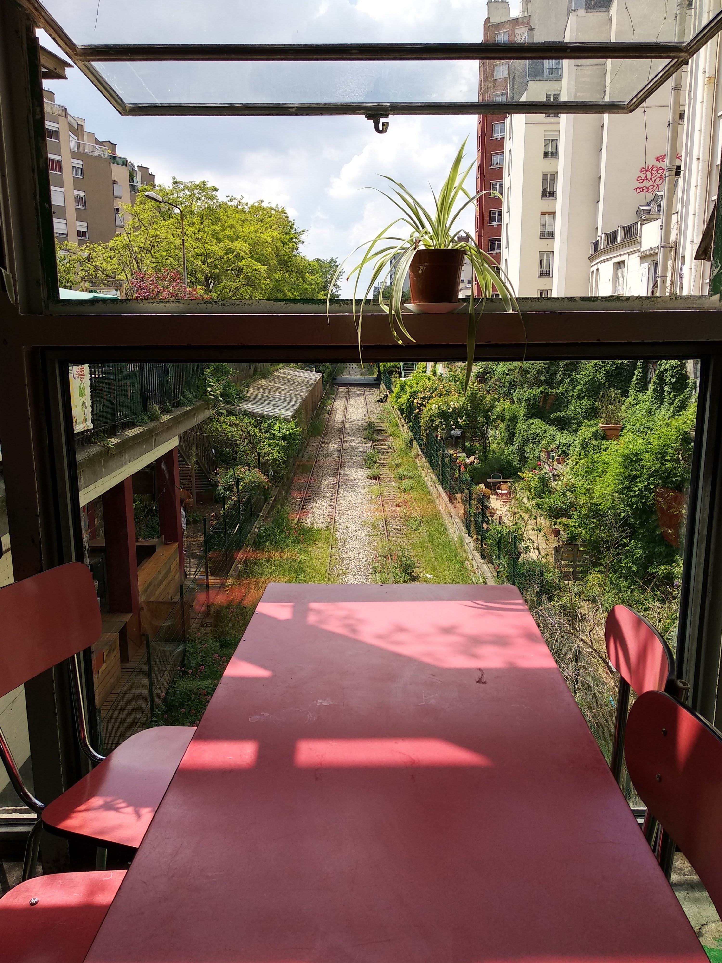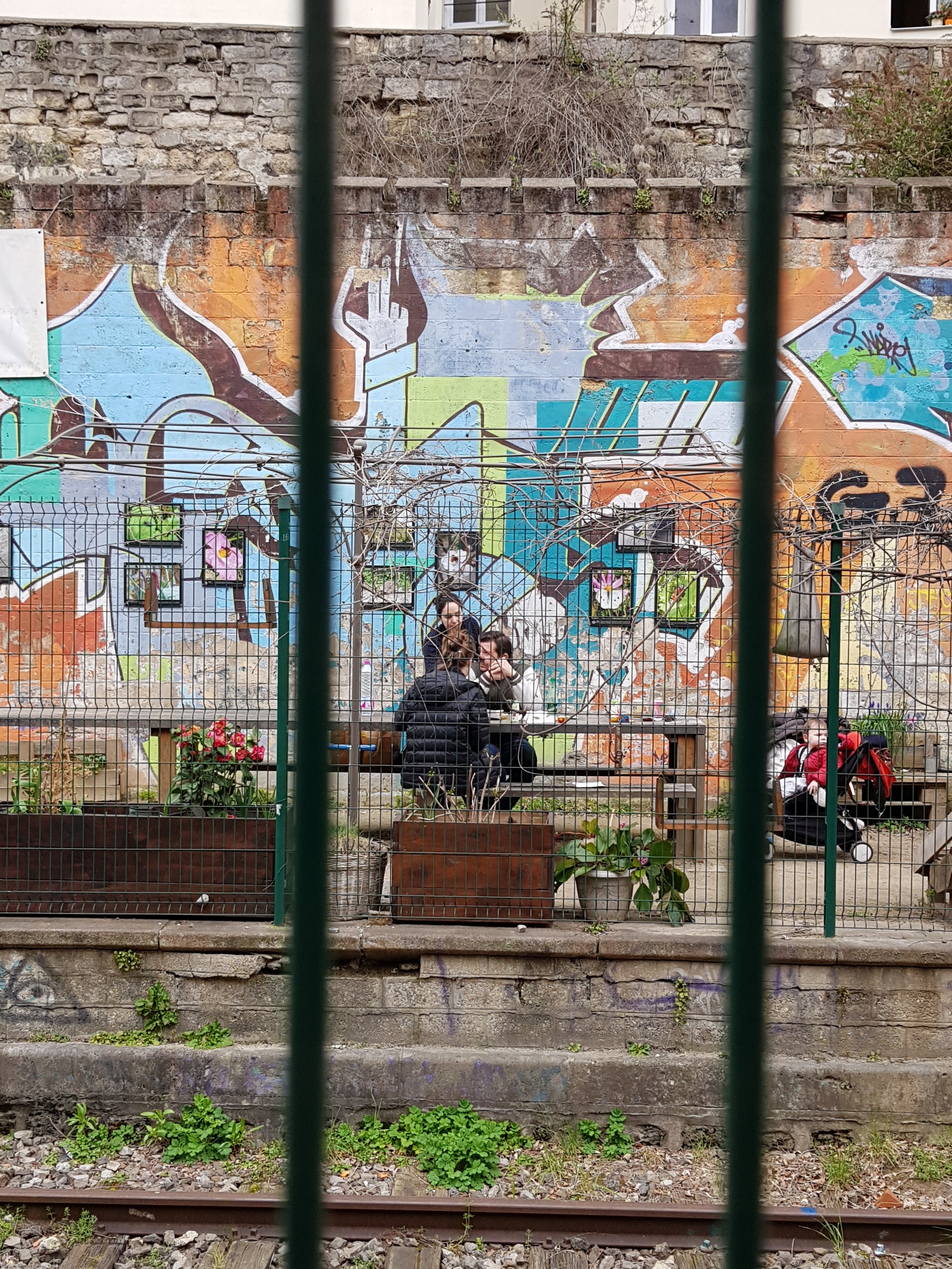 Le lieu est chaleureux. L'accès aux rails de la petite ceinture est très sympa.