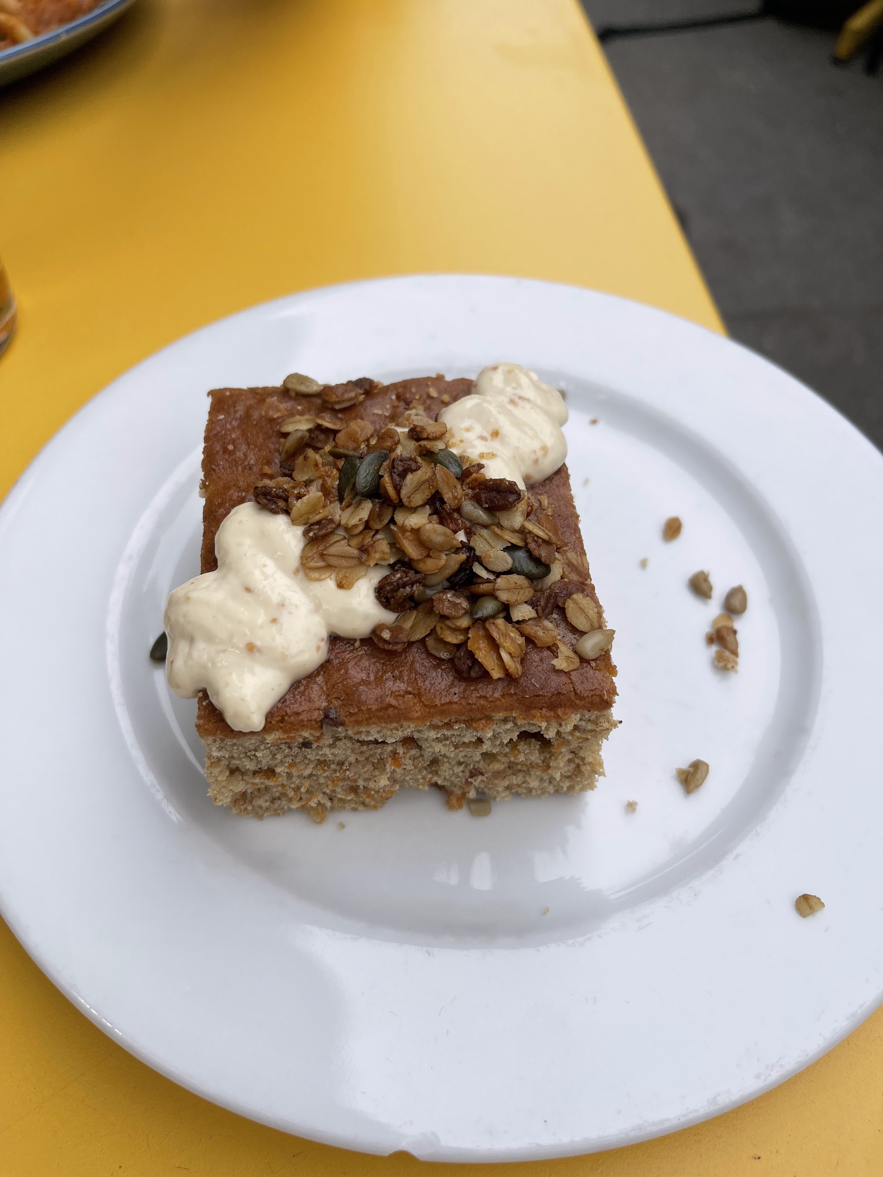 Endroit trop cool Sur le brunch (Vege ou Vegan): Tout était bon surtout le croissant et le dessert (j’ai pris un carotte cake). Très bon bissap et du café avec lait d’avoine à volonté Un peu déçue par l’assiette salée (un peu simple et légère)