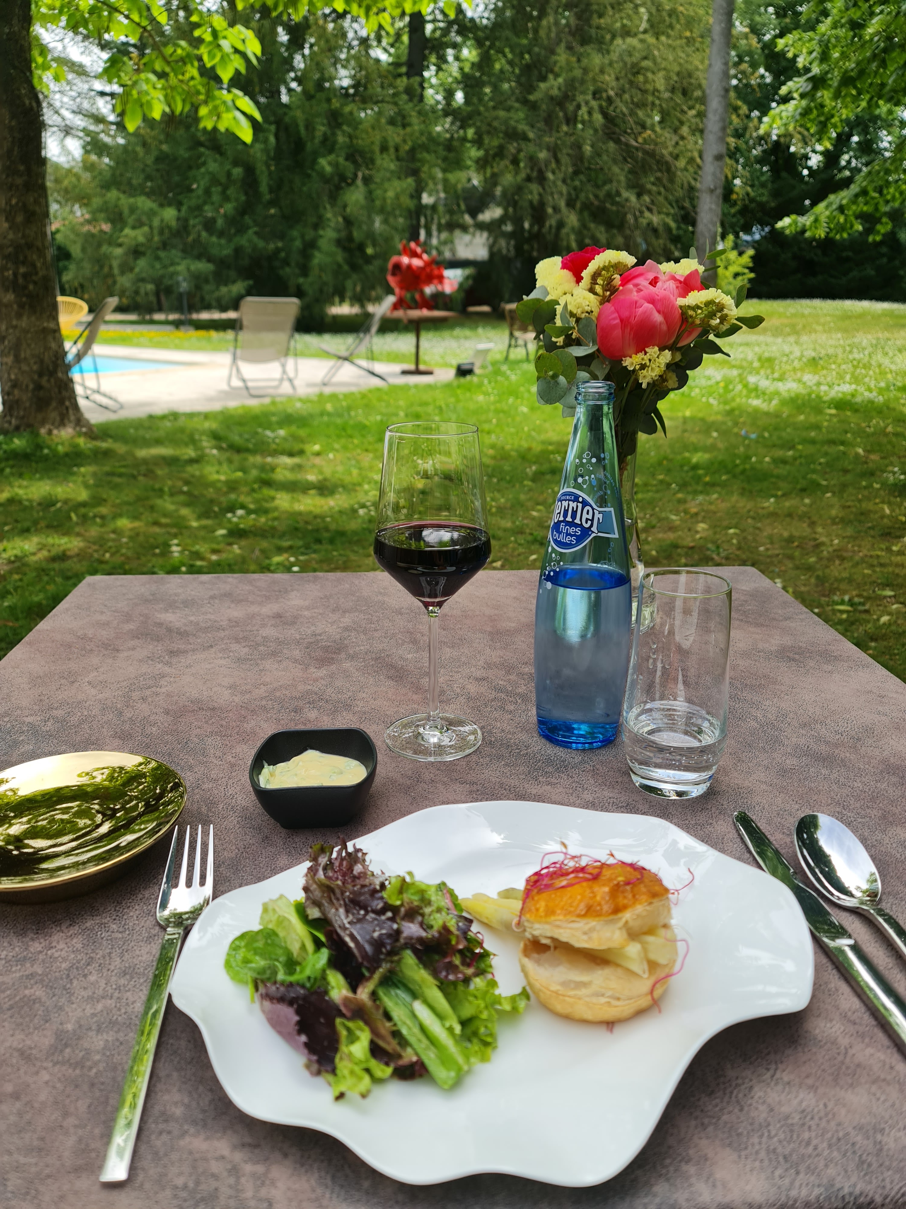 C'est une magnifique surprise que nous avons eu lorsque le portail s'est ouvert devant nous. Nous avons découvert un très beau parc verdoyant ainsi qu'une piscine. Une terrasse bien dressée. Nous avons eu un accueil chaleur de la part de la responsable des lieux et de ses salariées. Côté service rien à redire, nous avons à faire à des professionnelles qui nous expliquent les accords mets vins pour nos menus. Le personnel hôtelier nous décrit ce que nous avons dans nos assiettes. Les plats sont au premier abord très bien dressé, très raffiné. Niveau dégustation un délice pour les papilles. Nous avons vécu une belle expérience culinaire.