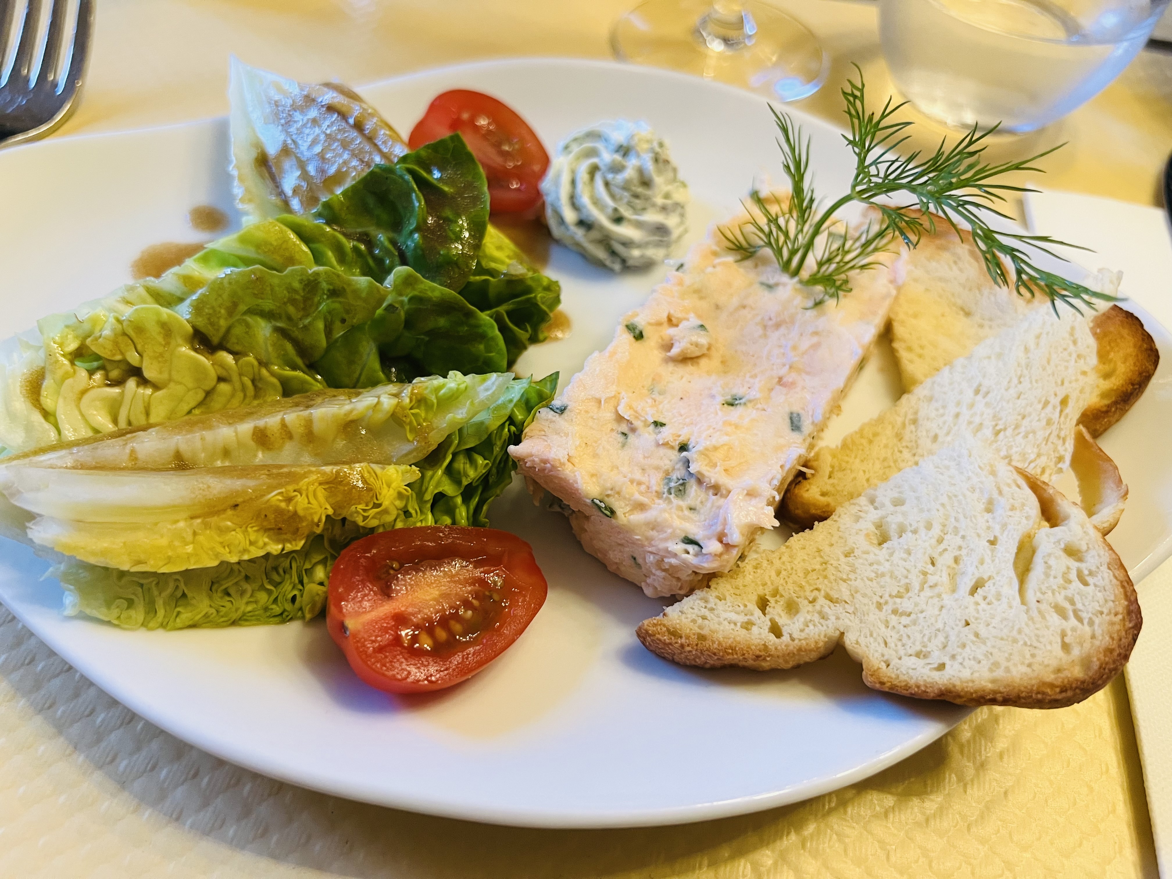 Accueil sympathique, souriant et attentif. Nous avons pris quelques entrées, toutes légères, fraîches, équilibrées et confectionnées avec des produits de qualité. Viognier de Chapoutier au verre. Tiramisu fraise rhubarbe, merveille d’équilibre. À recommander !