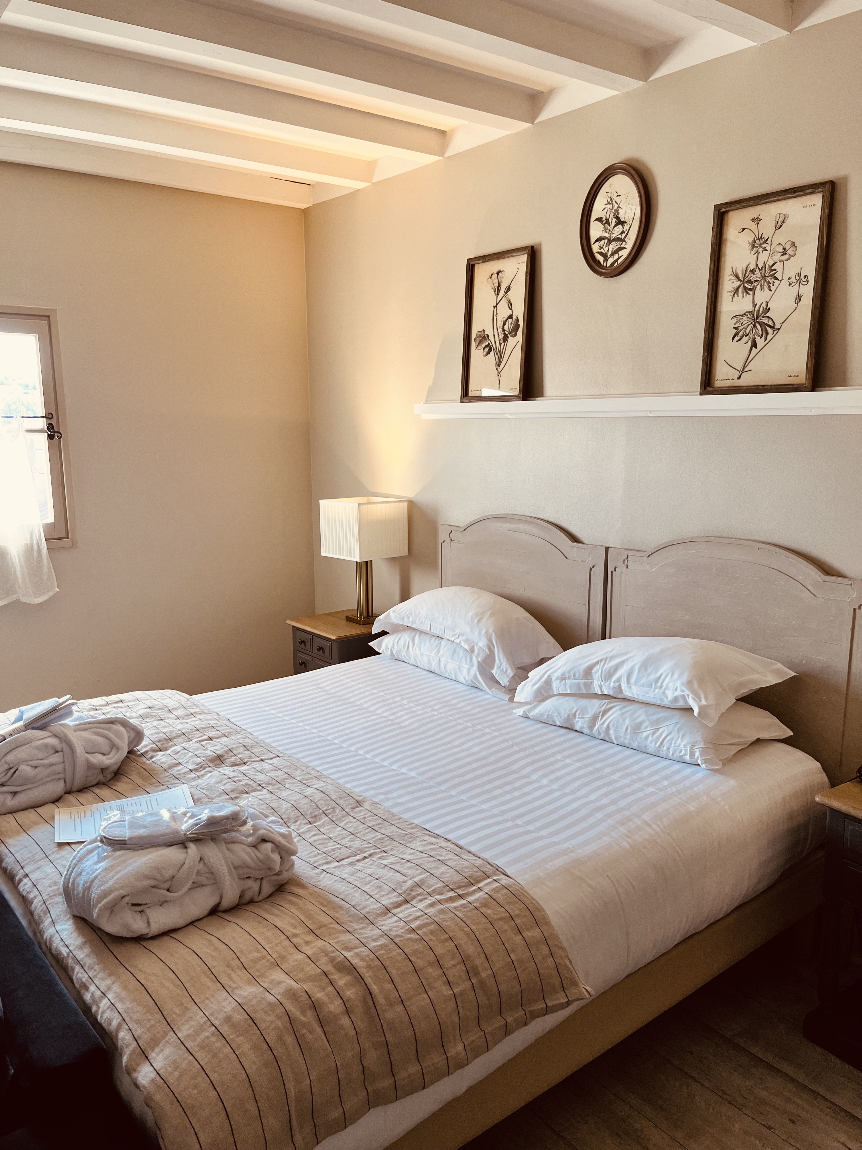 Nous avons passé une nuit du samedi au dimanche 6 au 7 août. Expérience mitigée surtout compte tenu du rapport qualité prix. La chambre supérieure était petite sans vue avec un dégât des eaux au niveau des toilettes sur la chambre iris de l’eau. La piscine bondée le Samedi. Même si le personnel était très compétent et attentionné, la surface et la localisation ne permettent pas selon nous de justifier un prix aussi élevé pour les prestations (même en haute saison par rapport à des établissements comparables) Note positive le restaurant (la table d’Emma) qui a pour le coup un rapport qualité prix imbattable
