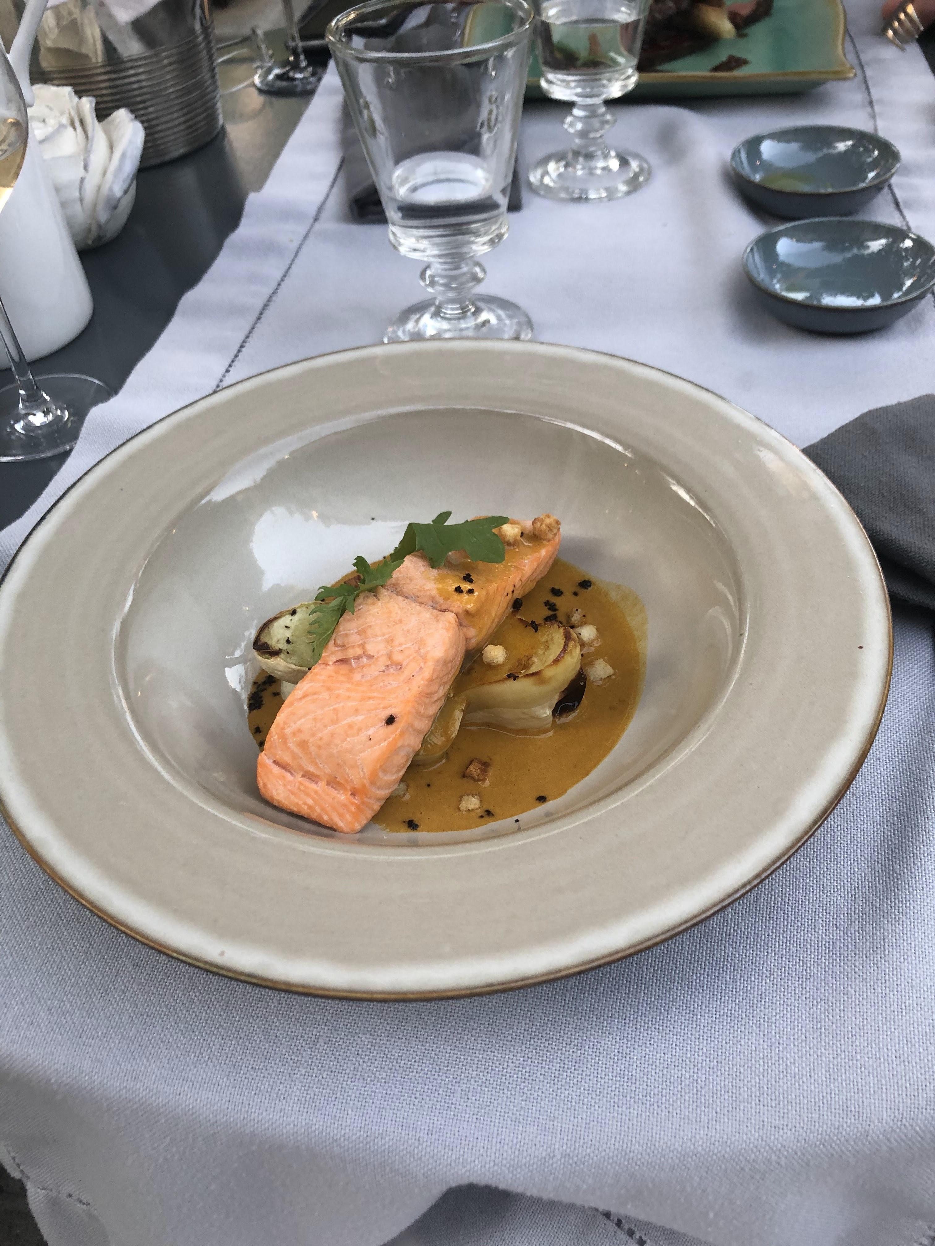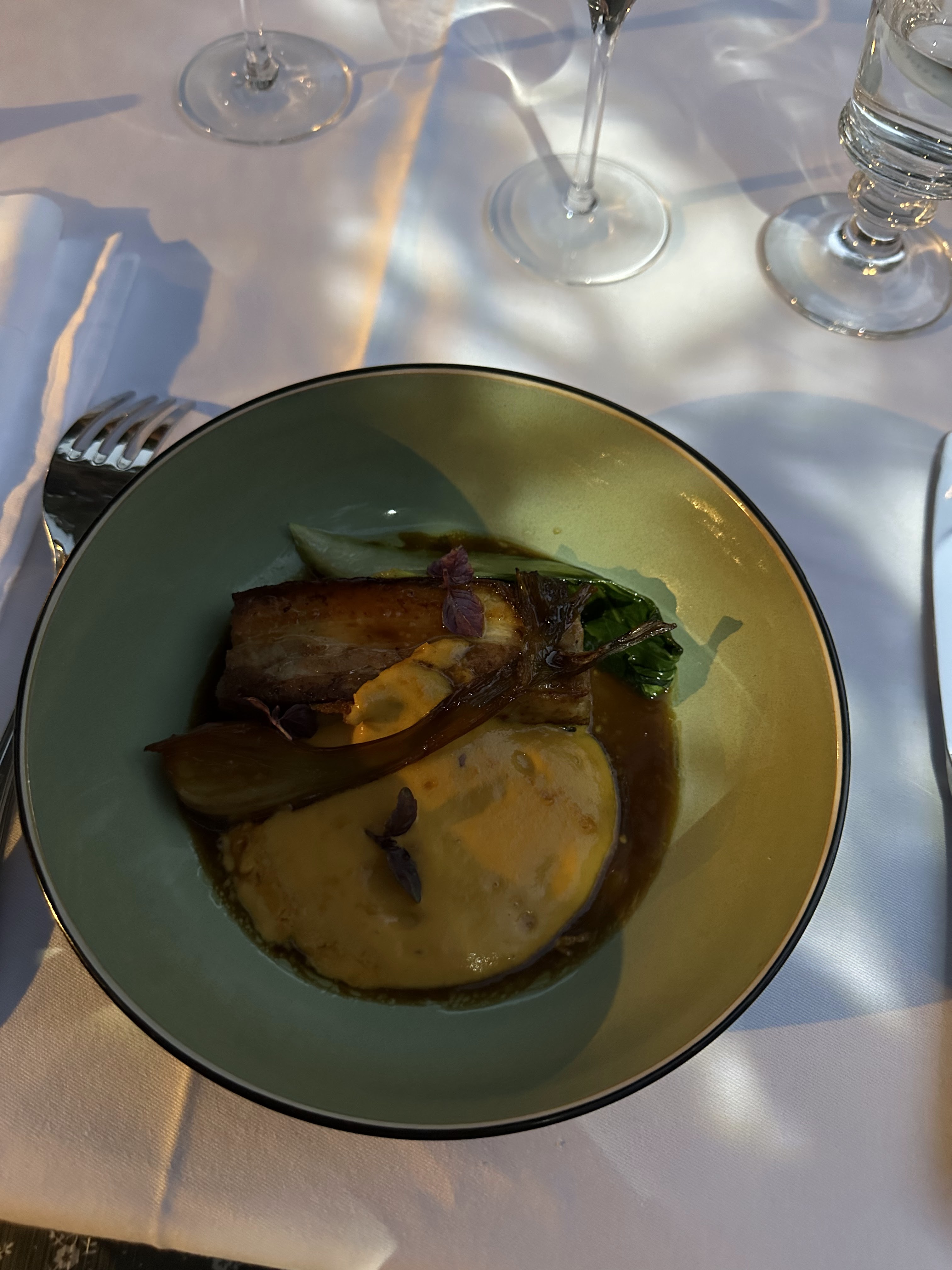Un délice bravo au chef pour cet sublime découverte culinaire, l'équipe est au top !! Un petit bémol simplement pour le prix du vin au verre 10€ : c'était un délicieux vin blanc local mais le prix de la bouteille ou même votre cadre ne justifient pas ce prix. Sinon tout est parfait est délicieux ♡ une adresse à découvrir sans hésiter !! On reviendra avec grand plaisir