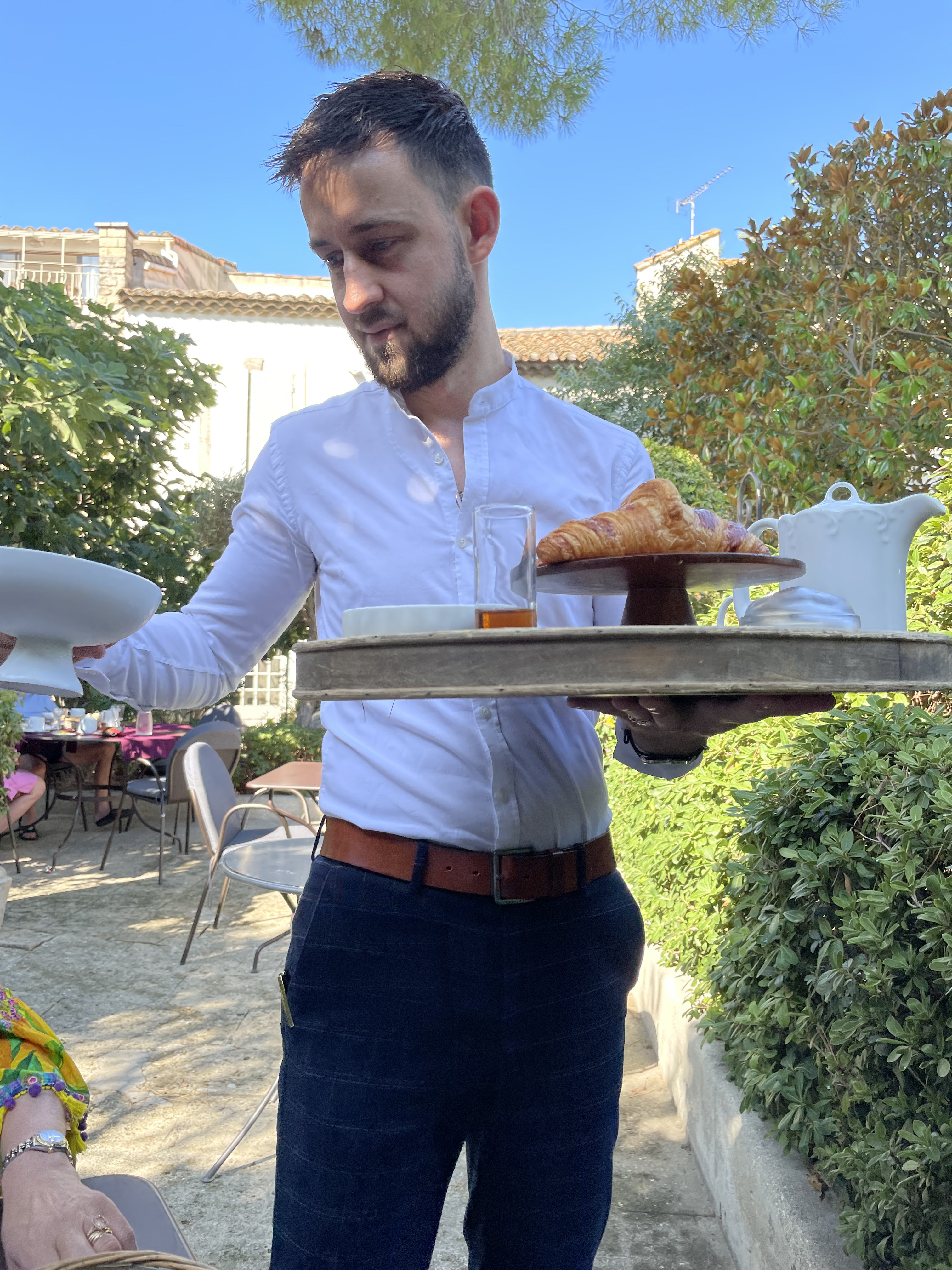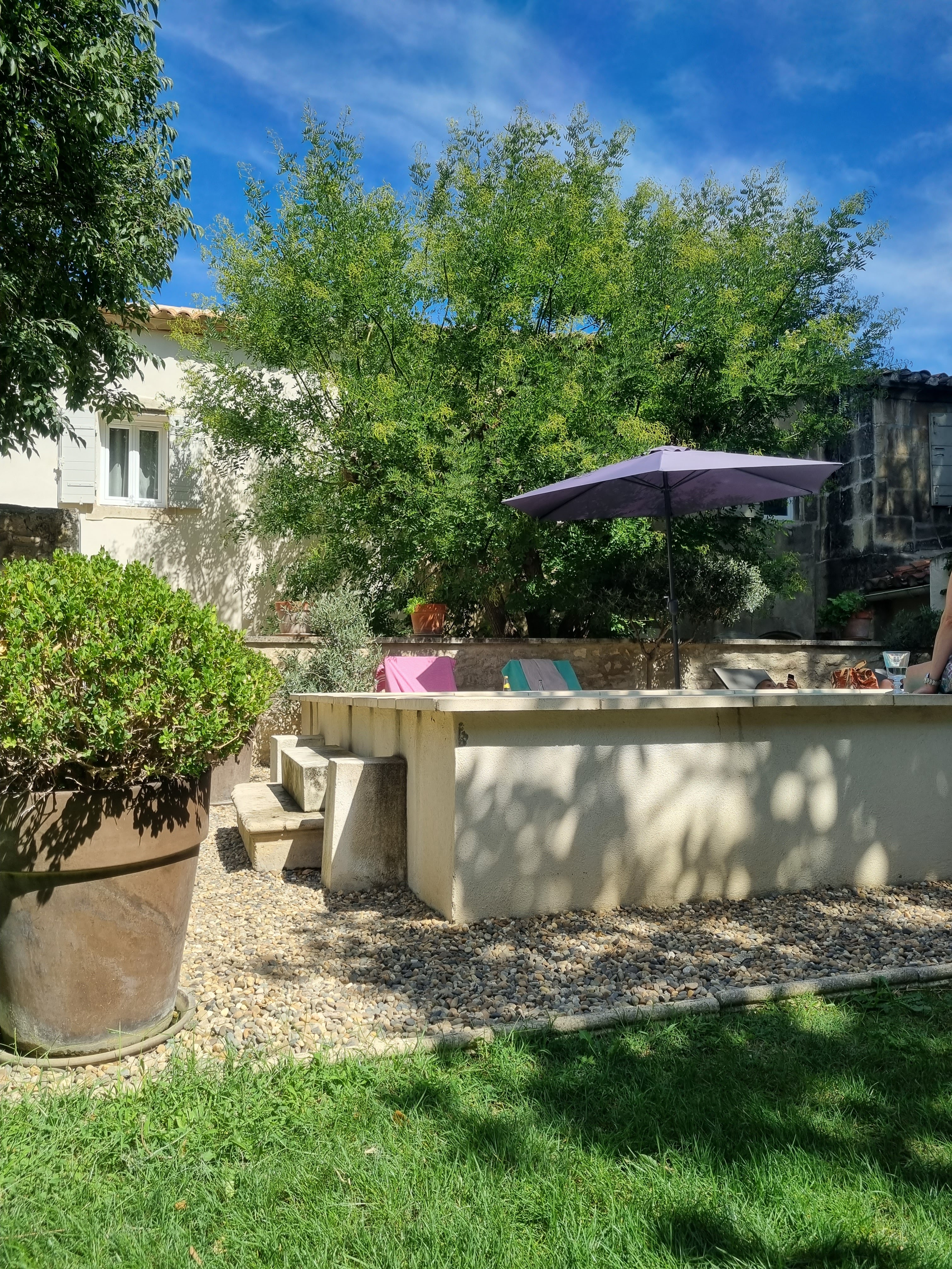 Un vrai havre de paix en pleine Provence. Le personnel est très prévenant, et personnellement, j'ai adoré le petit déjeuner servi à table ; ça change des buffets. Le service est au top. La chambre super cosy était un peu petite à mon goût, mais très calme, même fenêtre ouverte sur la rue. La baignoire de la salle de bain avait subi les outrages du temps et détonnait avec le reste des sanitaires très tendance ( belle vasque...)Le jardin est reposant, une oasis de verdure ideale pour petit déjeuner...ou n'importe quel repas d'ailleurs 😉. Le jacuzzi extérieur offre un espace de détente bienvenu. Hôte l 4 étoiles si ma mémoire est bonne, évidemment le service a un prix, notamment la place de parking extérieure dans la rue( 20 euros par nuit; il y a un parking public au bout de la rue. Si votre voiture ne craint rien, déchargez vos bagages, refaites le tour et garez vous là 🤗) et le supplément pour animal de compagnie ( 20 euros par jour également ou comment gagner de l argent facilement; depuis le temps que je voyage, je n ai jamais vu un établissement pratiquer un tarif pareil pour ce genre de prestations. Ça fait cher les 2 minis gamelles - j'ai un chien de 30kg- et les 2 biscuits)