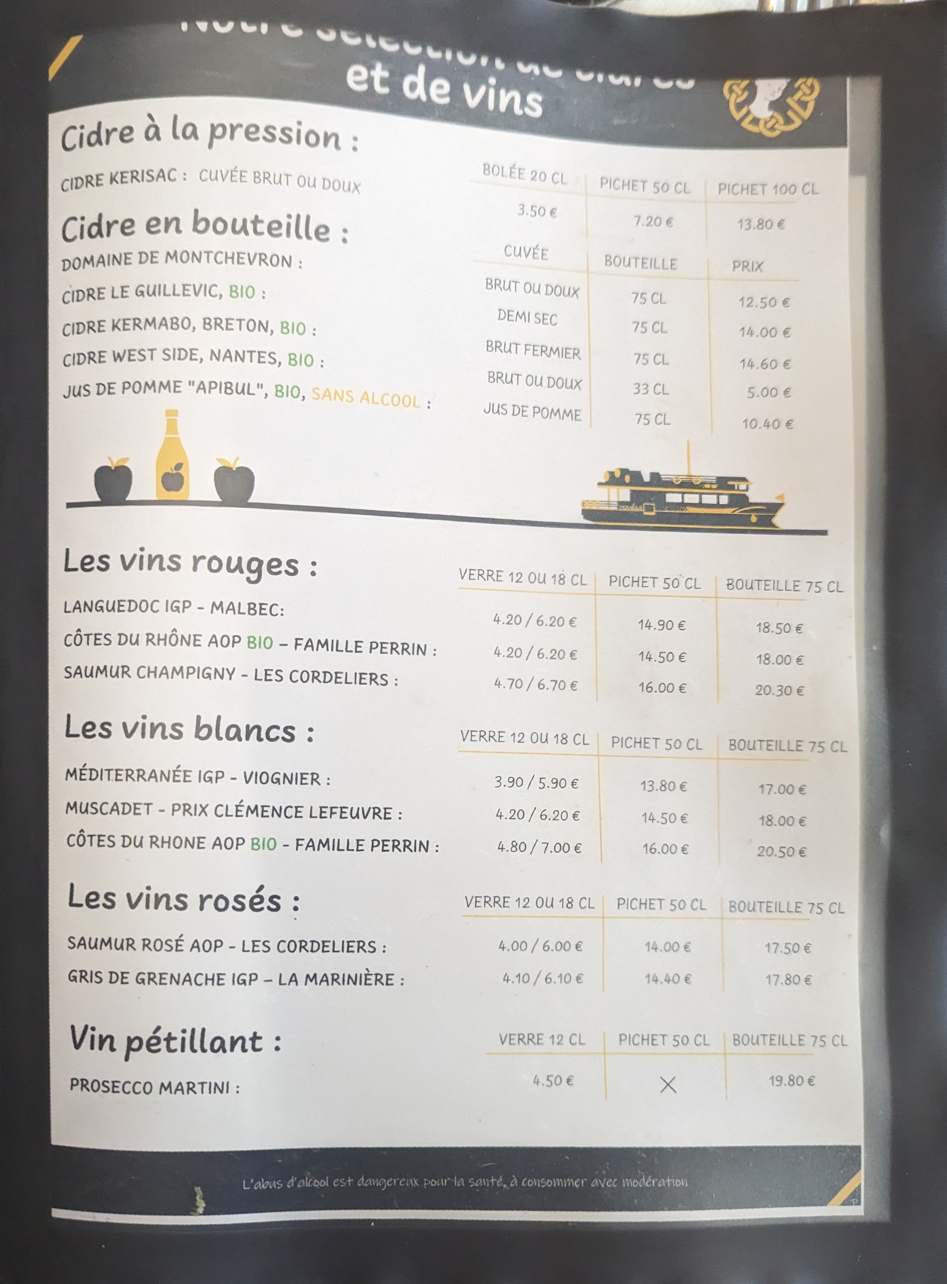 Les galettes et les crêpes sont bonnes, le choix est varié. La terrasse au bord de la Loire est super sympa quand il fait beau. Le service était un peu plus long au niveau du dessert mais compréhensible compte tenu de l'affluence du soir. Le personnel est agréable.