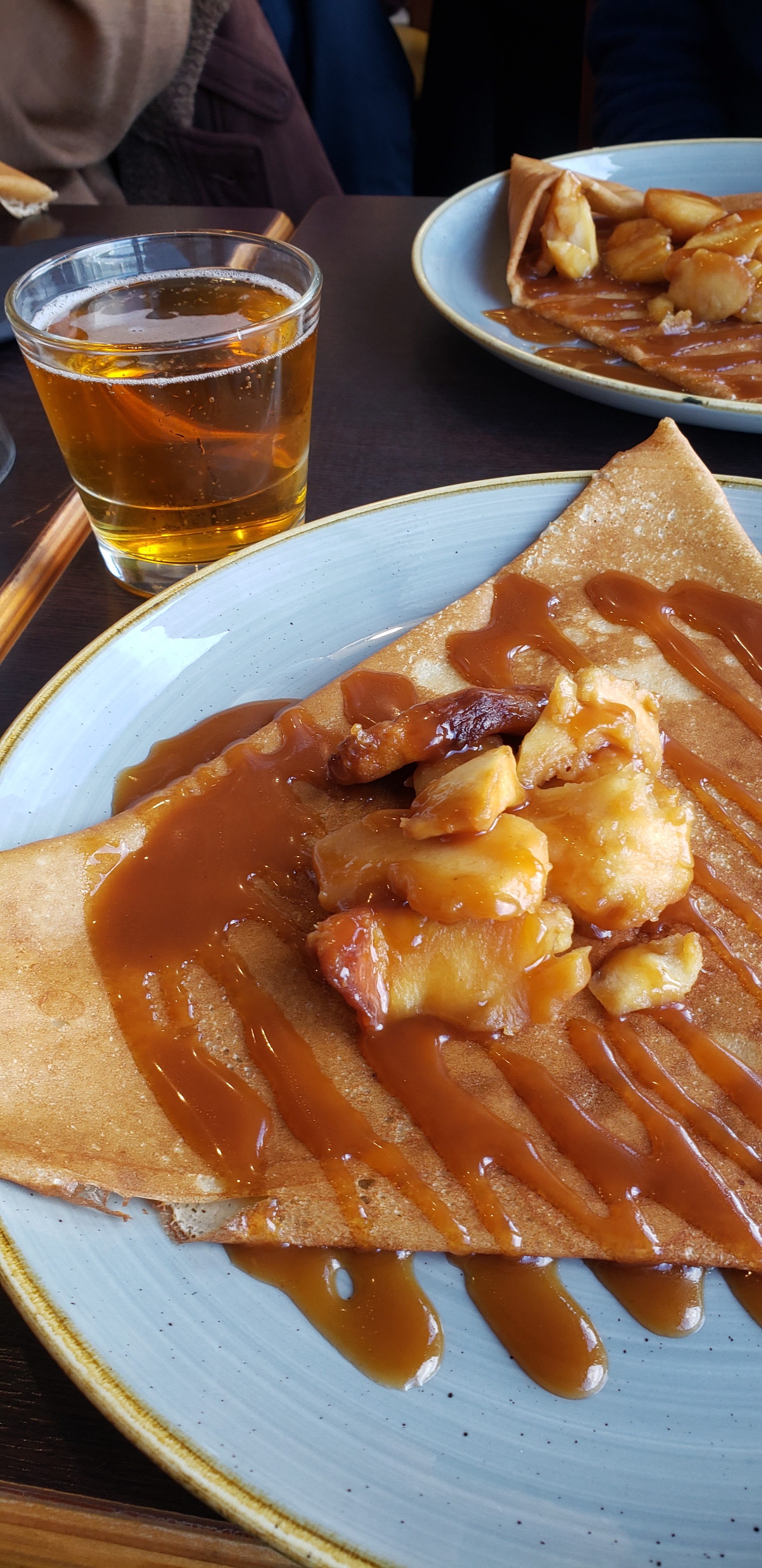 Très bonnes galettes. Services très rapide pour un samedi soir. Le cidre brut est trop sucré pour moi 🥴. Sympathique soirée entre amis
