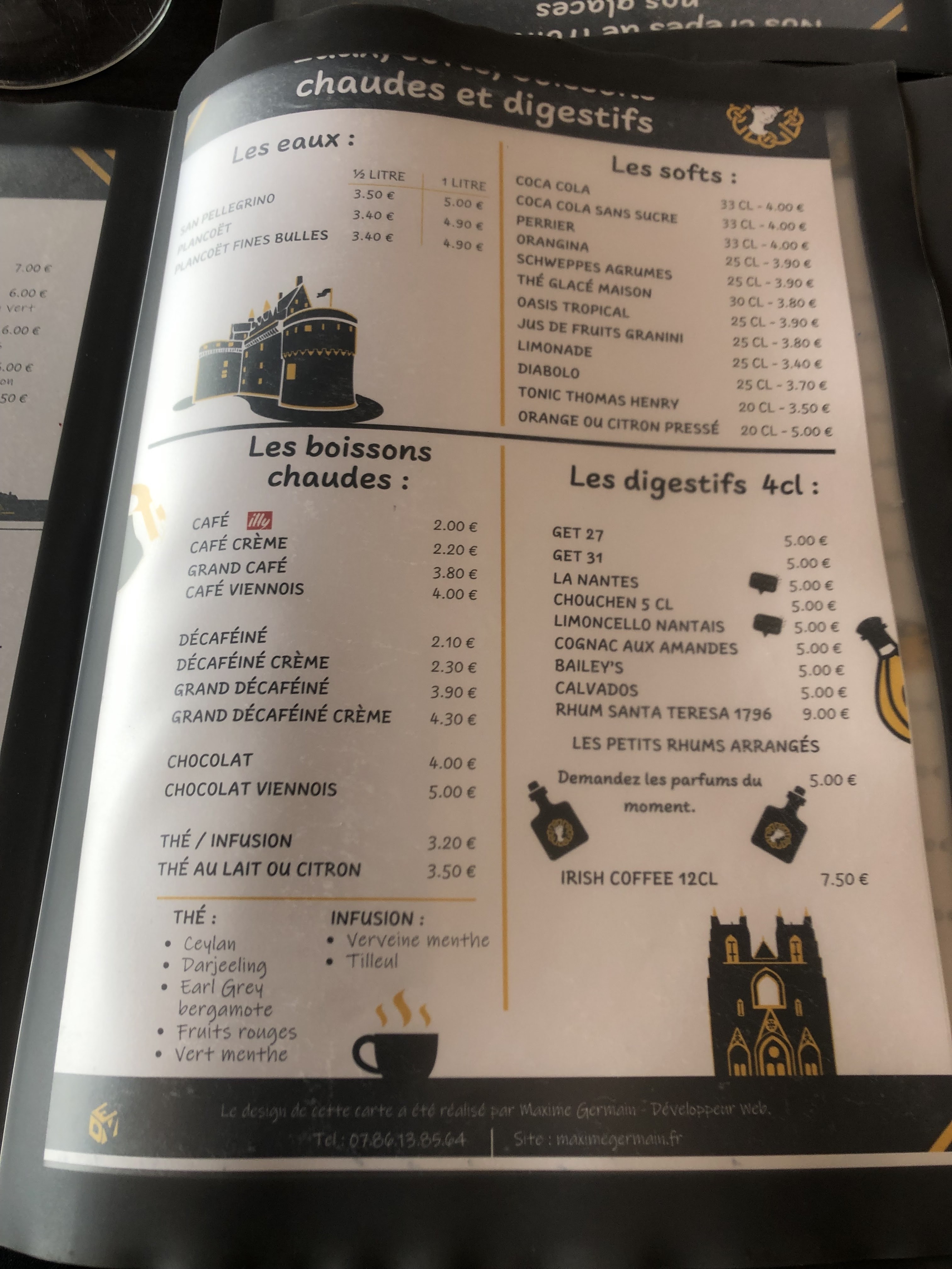 Un goûter plutôt agréable, en face de la Loire et de l'île de Nantes (et du Navibus). Les crêpes sont bonnes et généreuses. Le moins dans mon cas à ce moment là : un des serveurs avec un tatouage de boussole à l'avant bras assez antipathique, qui nous a acceuilli froidement, que j'ai entendu râler plus tard au sujet des gens qui allaient dans les toilettes hommes ou femmes sans que leur genre ne corresponde (on s'en fiche on y fait tous·tes la meme chose), et qui sur le coup de la colère balancent des verres juste devant nous au moment de nous faire payer et de manière toujours aussi froide... Venant de l'hôtellerie c'est pas admissible de voir ce genre de comportement en service. Dommage, ça aurait pu être 5 étoiles !