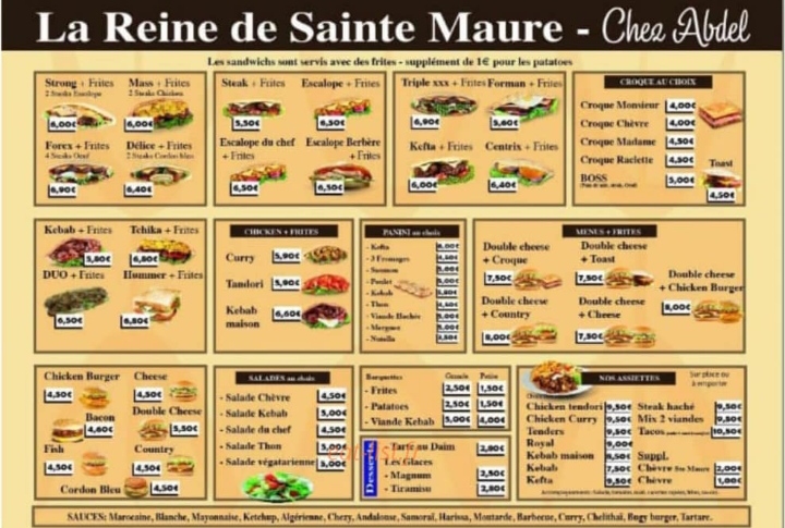 La reine de sainte Maure à déménagé sur la route principale de la ville. Très bonne idée avec désormais un côté restauration rapide et de l'autre les spécificités Couscous et tajines notamment. Côté reine de sainte Maure, hygiène excellente et une cuisine bien faite Bravo J'irai volontiers tester les spécialités et je retournerai manger c'est sûr une des multiples proposition de la restauration rapide et profiterai peut être de la terrasse En plus du sourire et de la politesse du personnel les prix sont plus que correct Merci et bravo pour cette belle idée