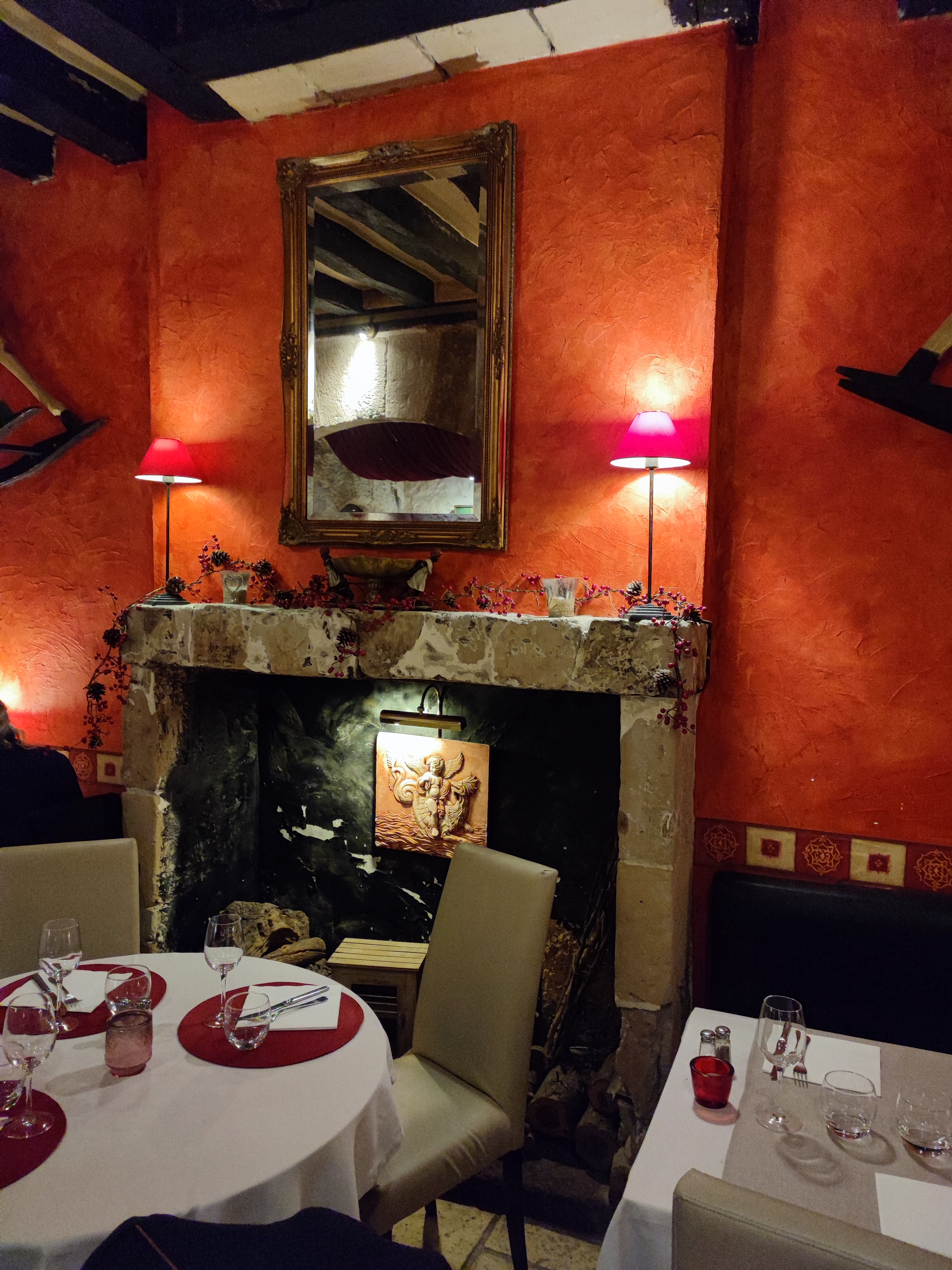 Idéalement situé près du château, cadre très agréable. A l'intérieur, petites tables joliment décorées et les murs sont en pierres apparentes avec une petite arche. Très romantique !!! La carte est abordable et on y mange très bien. Une adresse à garder. Un conseil, pensez à réserver !