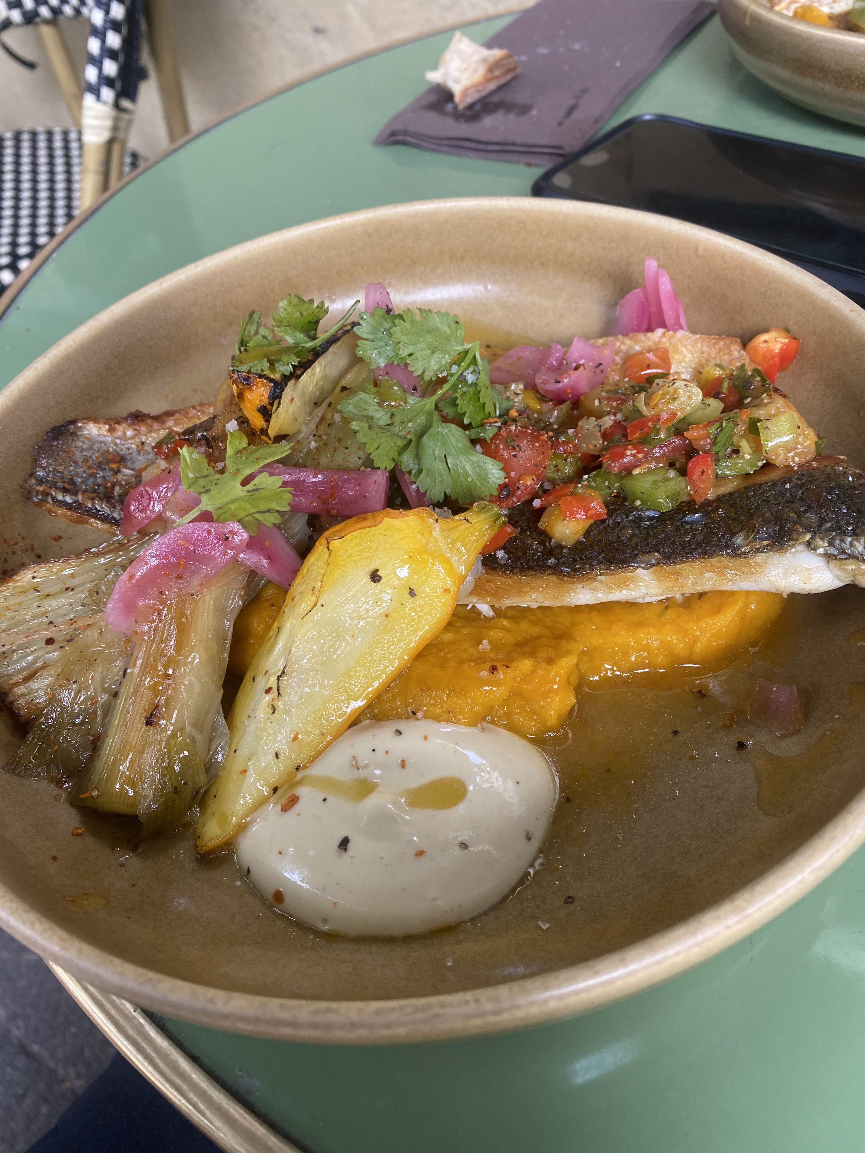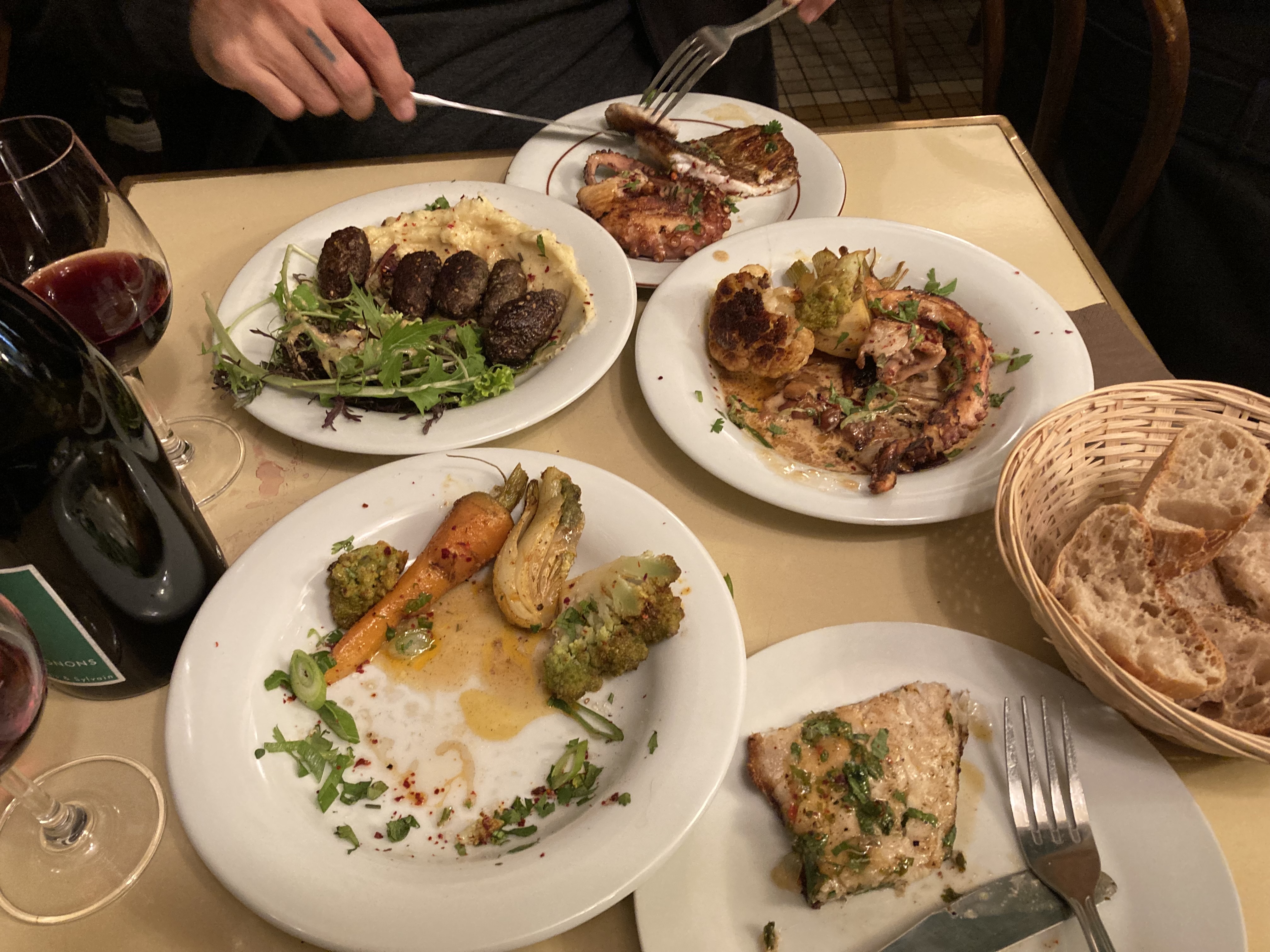 Nous y sommes allés deux fois : une fois pour le déjeuner et une fois pour le dîner. Pour le déjeuner, vous avez le choix entre trois plats (nous en avons pris un végétarien et un avec du poisson). Pour le dîner, vous pourrez choisir entre différentes tapas à partager (nous avons pris cinq plats végétariens et de poisson). Tout était tellement délicieux ! Endroit très fréquenté, ambiance animée, équipe sympa, prix super justes. Certainement à recommander!