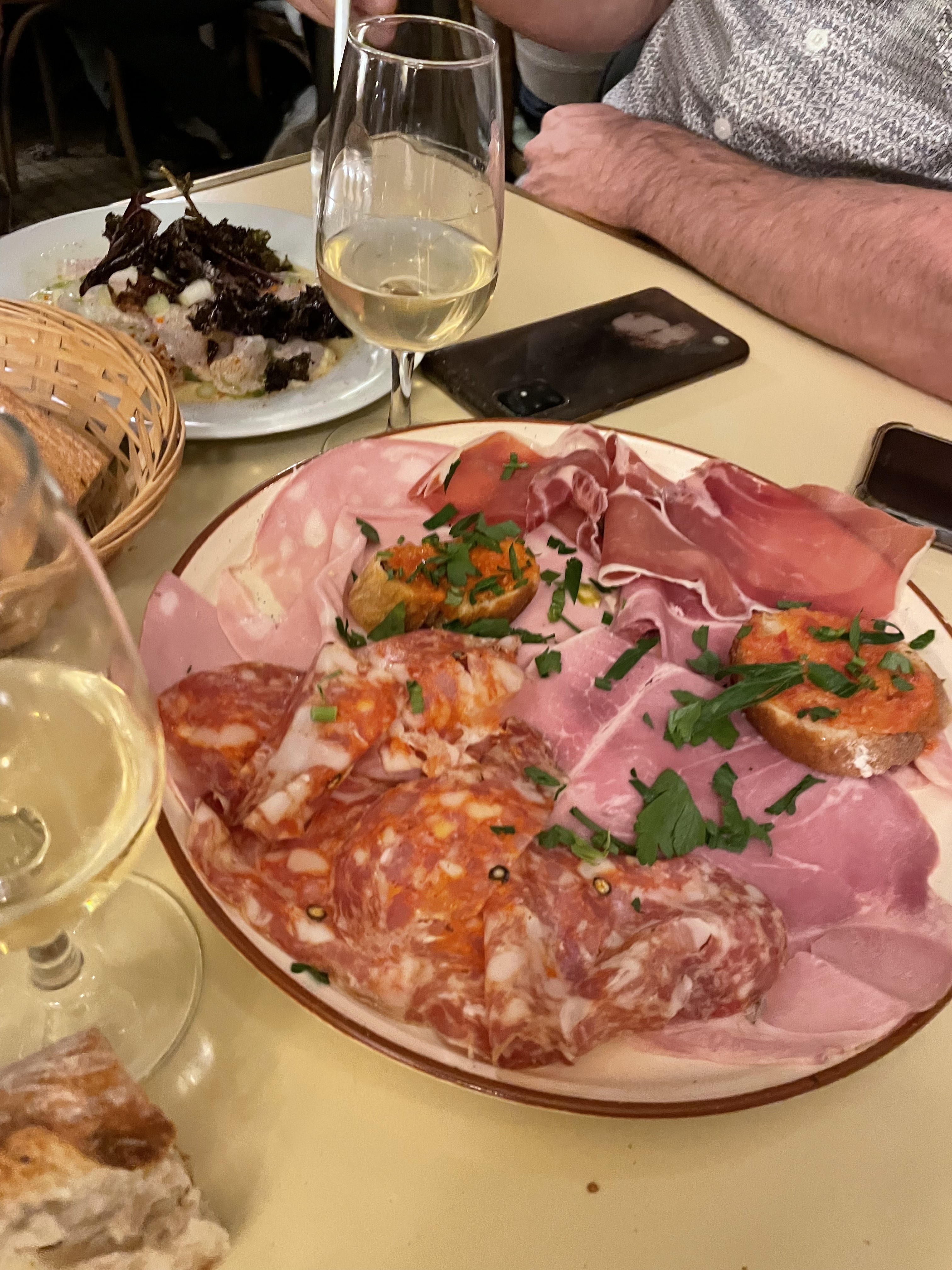 Vraiment, très bonne nourriture. Grand vin. Le service était fantastique. Ils étaient clairement très occupés (cet endroit est occupé à chaque fois que je passe devant), mais ils ne vous font jamais sentir mal ou pressés. Le gars du bar préparait des boissons très rapidement et recevait des commandes consécutives, mais prenait quand même le temps d'être sympathique et patient lorsque nous commandions nos boissons. La fille qui attendait les tables dans la rue était sympathique et drôle, donnant d'excellents conseils sur ce qu'il fallait commander. Notre nourriture est arrivée rapidement. Vous ne pouvez pas faire de réservation, il vous suffit de vous tenir parmi les tables et d'attendre que quelqu'un se lève et se déplace rapidement pour le saisir. Ce n'est pas pour tout le monde, mais cela ne nous dérangeait pas :-) Quel que soit le gars qui travaillait au bar et la fille blonde qui travaillait aux tables, le lundi 7 août, merci ! Tu étais formidable.