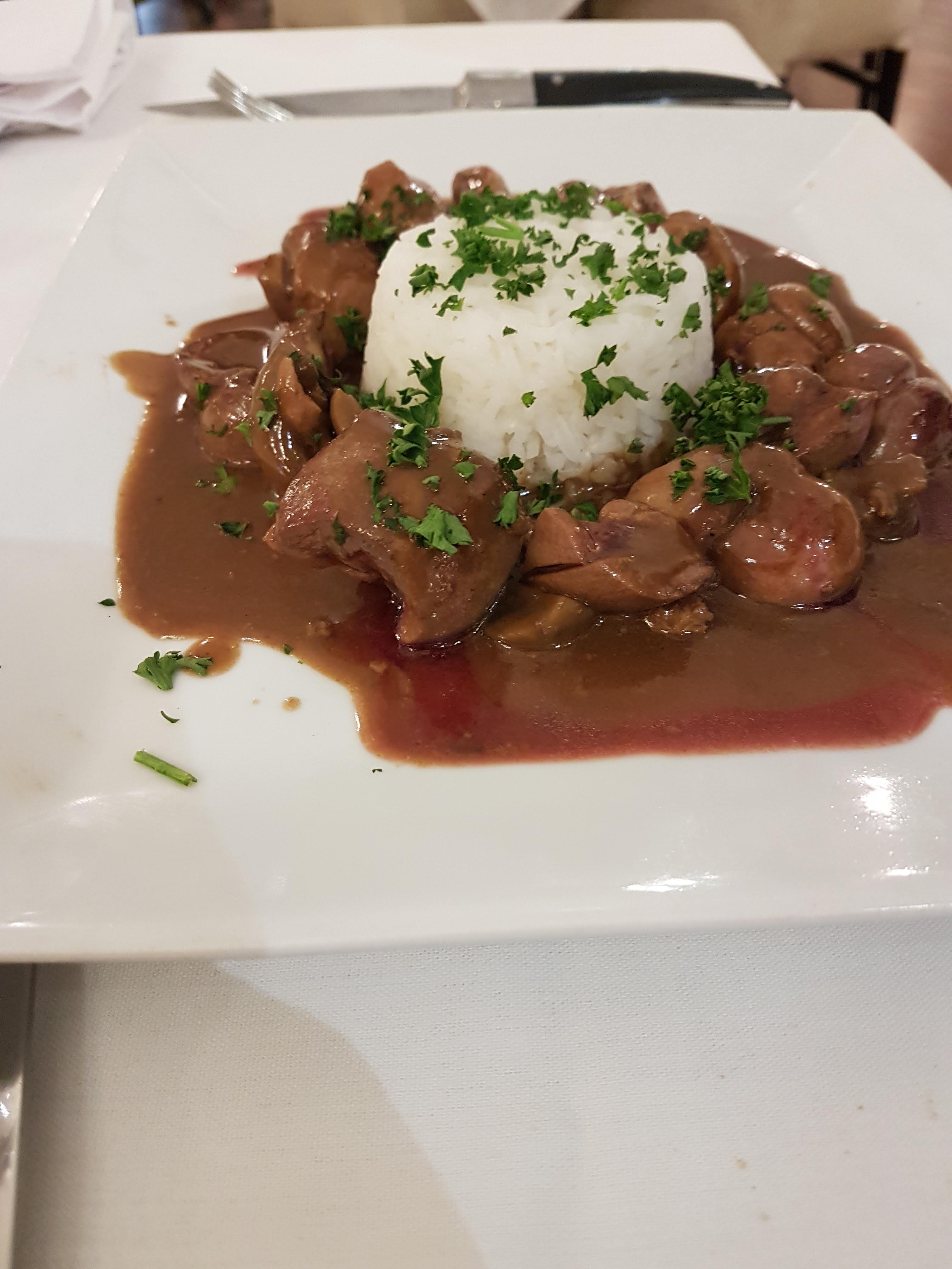 Serveur agréable MAIS Prix très excessif ( 24,90 e ) pour un repas niveau cafétéria : Foie gras maison soit disant ??? Frites surgelées, dos de cabillaud cuit à l'eau , le tout sans sauce excepté un filet d huile . Je le recommande pas .....