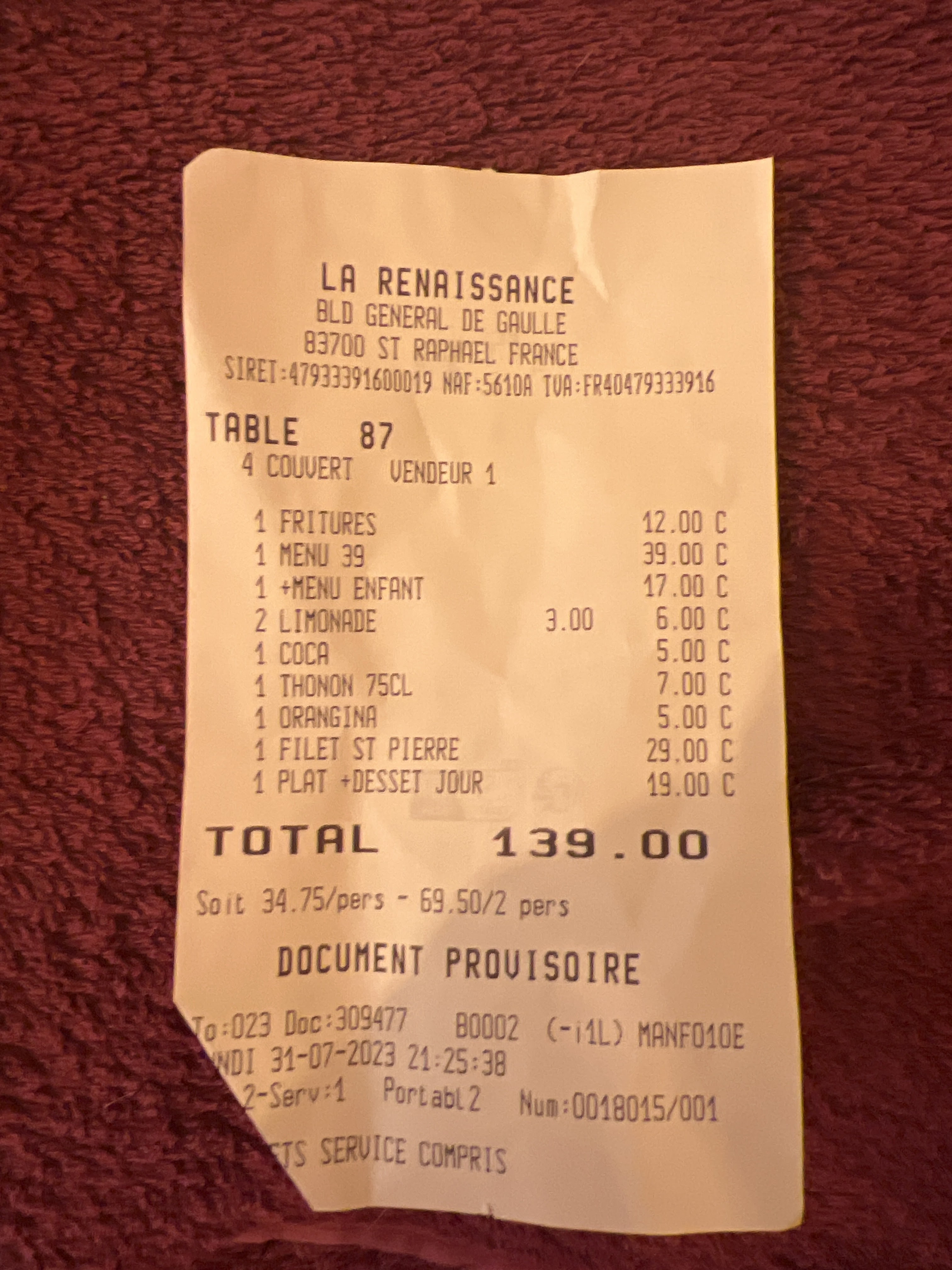 Très déçu par le menu du 1er janvier, l’accueil du responsable. Erreur sur addition,. mais nous n’étions pas les seuls. La coupe de champagne offerte était une 1/2 coupe ! A déconseiller. Nous ne sommes pas des touristes, mais des raphaellois.
