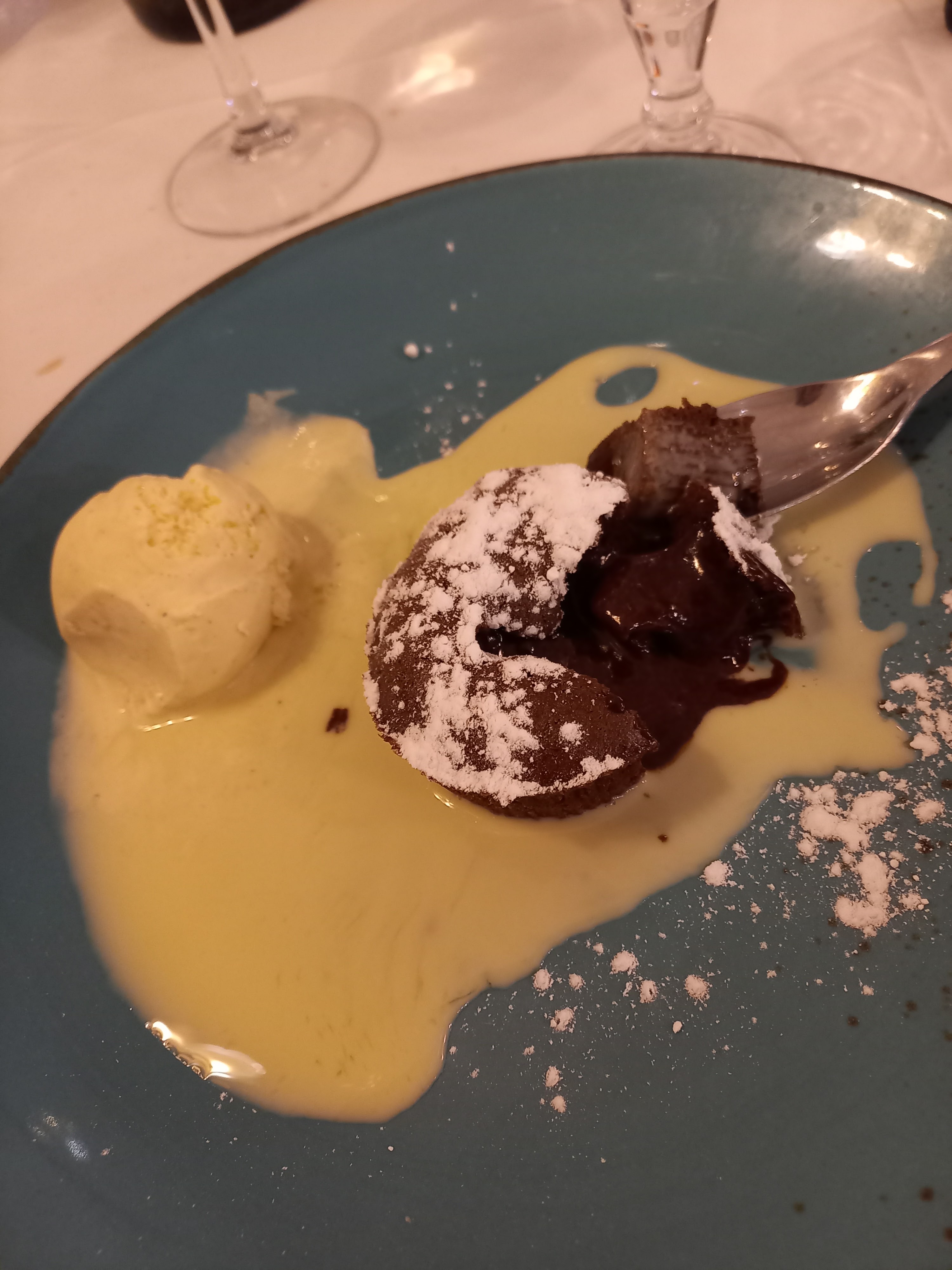 Le dessert soufflé au grand marnier est une tuerie ! Sortir du resto et faire quelques pas sur la plage est un vrai bonheur (voir la photo)