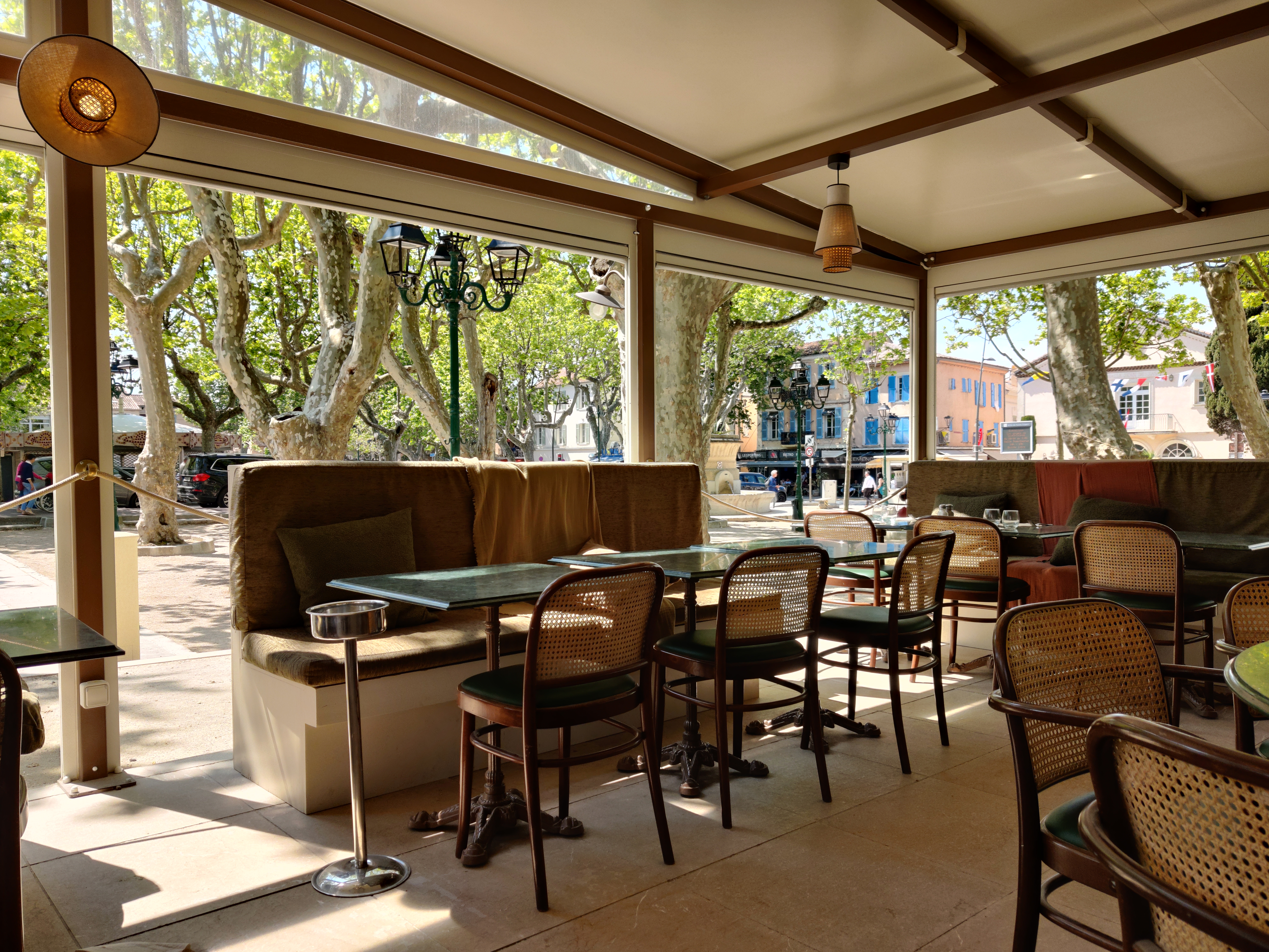Bel emplacement sur la Place des Lices à Saint-Tropez ! en toute saison ! Restaurant bien décor et lumineux ! Bonne Cuisine ! Personnel Agréable - Je recommande : )
