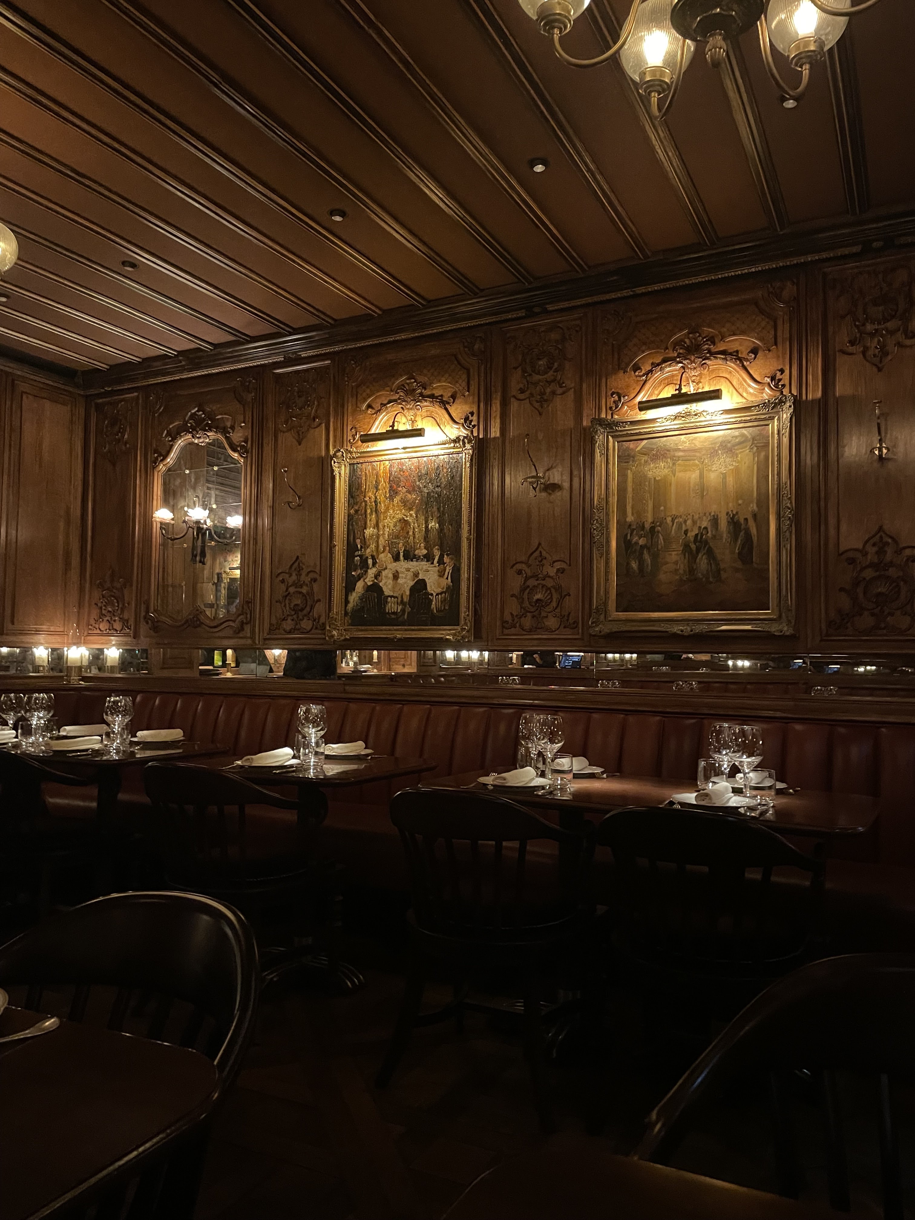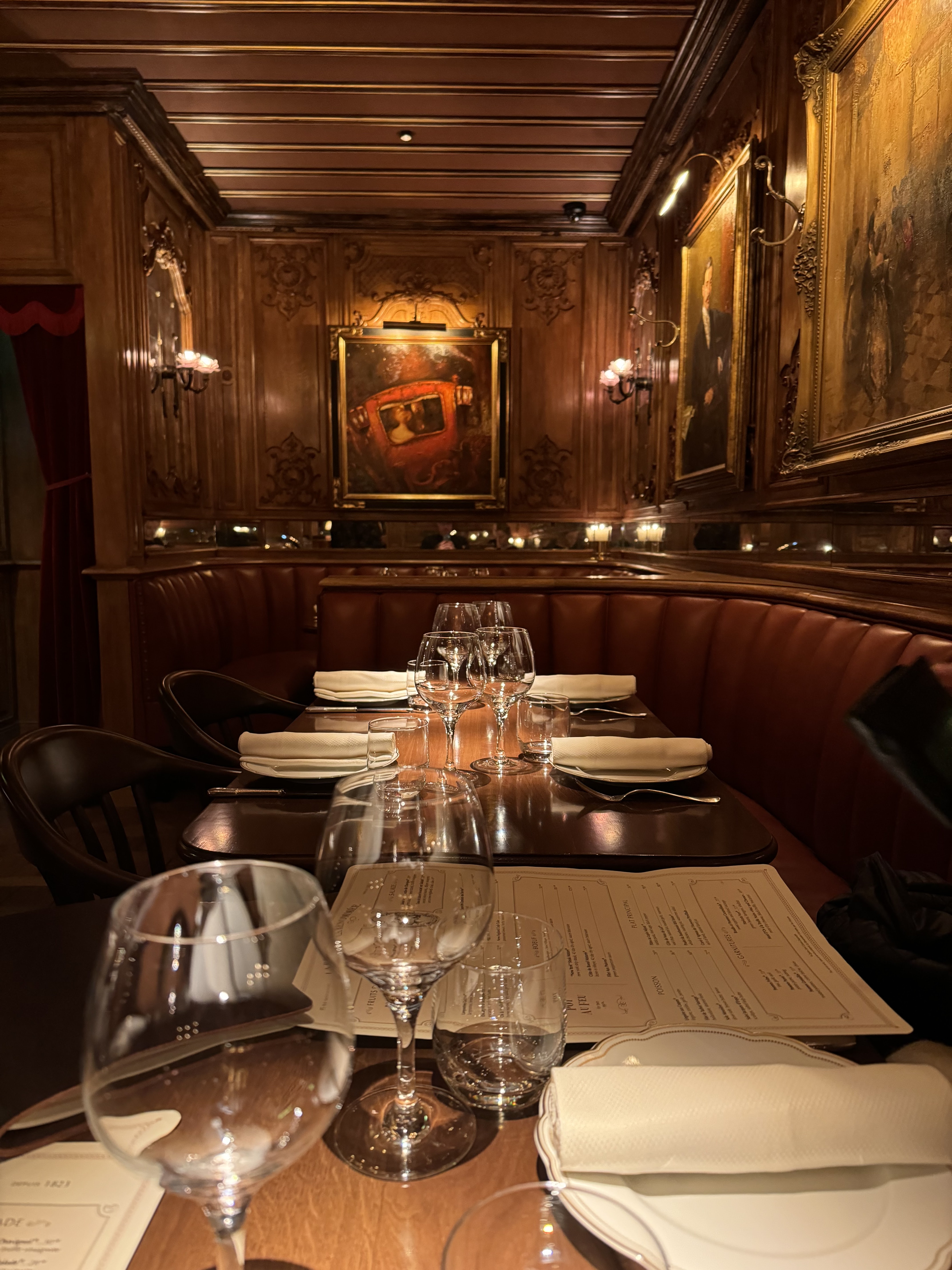 Je suis ravi d'avoir cette chop house basée aux États-Unis à Paris. Beau décor : boiseries, sièges en cuir et peintures françaises du vieux monde. La nourriture est délicieuse avec des portions généreuses et le tout parfaitement cuit. Nous avons eu la salade de chèvre, la côte de veau et la sole meunière qui étaient toutes délicieuses accompagnées de frites et de haricots verts. Une superbe carte de cocktails et de vins avec un large choix. Notre commande a été foirée mais surtout, nous avons reçu des excuses immédiates et cela a été rectifié rapidement. Sachez que c'est un restaurant cher, mais je pense que vous vivez une expérience unique à Paris et que vous en valez la peine. Le bar à cocktails en bas a l'air magnifique et nous reviendrons bientôt pour en faire l'expérience !