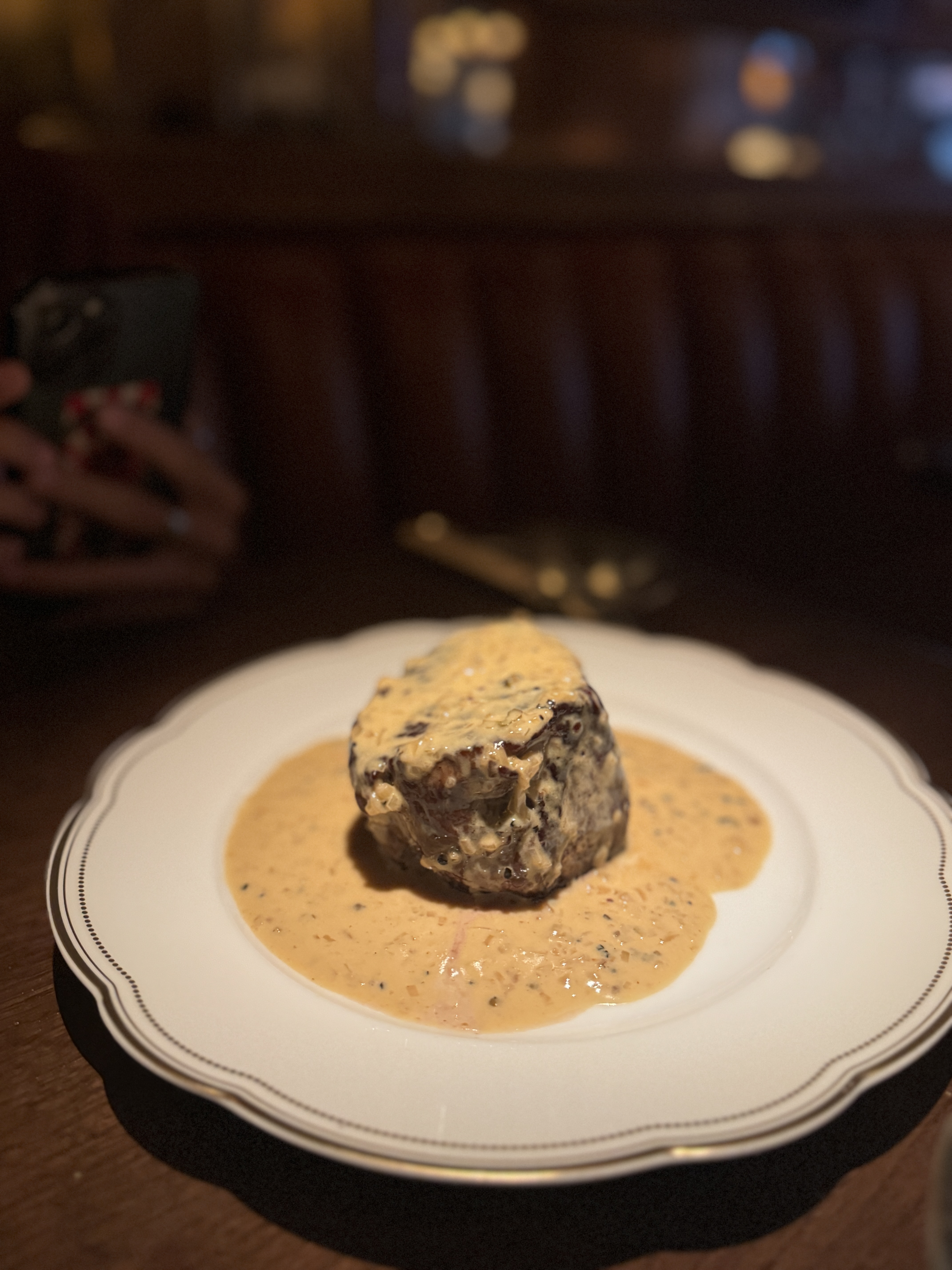 Oh mon Dieu, je recommande vivement cet endroit. C'est cher, mais pour moi, je suis heureux de payer car la nourriture est EXCELLENTE avec le service qui va avec. C'est une grosse décision, mais c'est en fait le meilleur steak avec une sauce au poivre que j'ai jamais mangé. Il y a aussi un joli petit bar en bas, l'endroit idéal pour se détendre après le dîner.