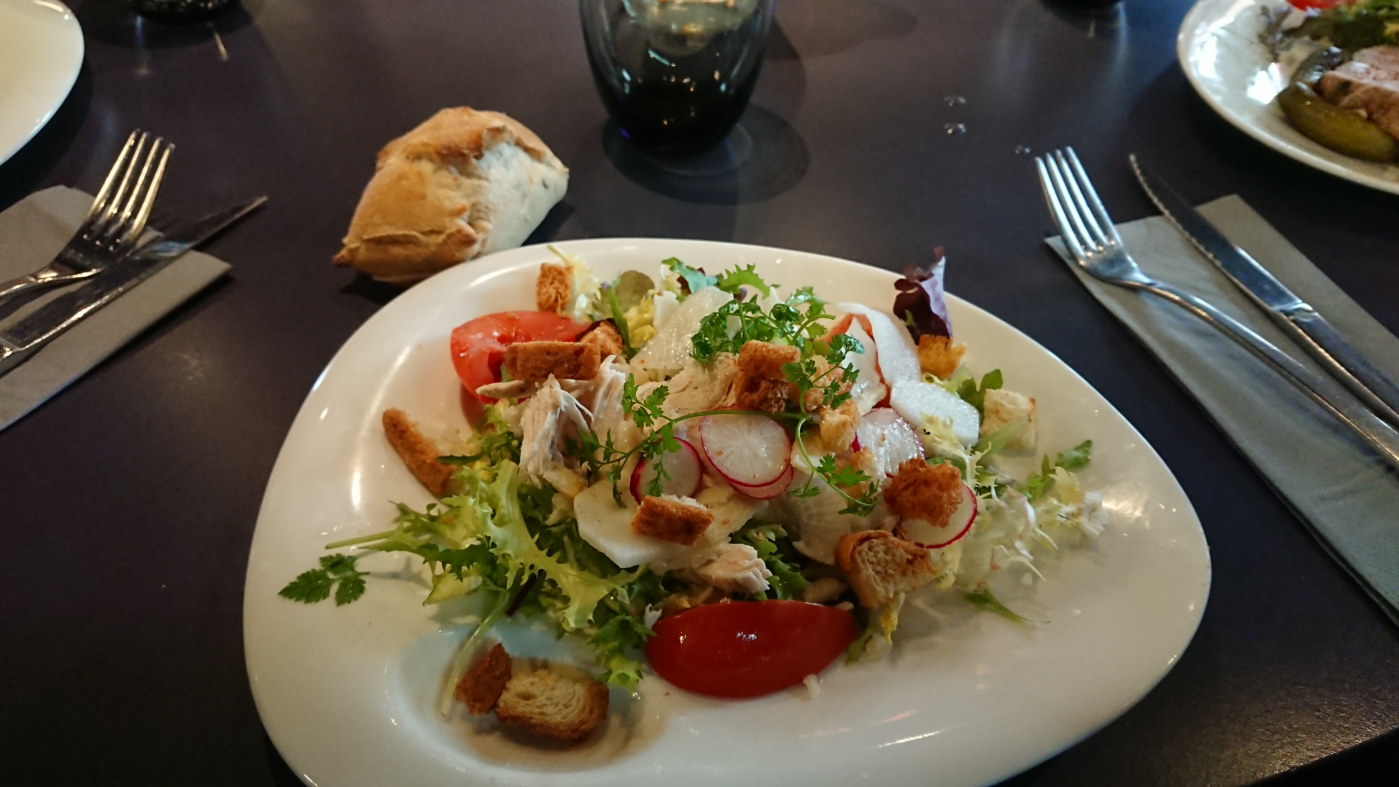 Excellent accueil. Pour ma part, une salade Caesar gargantuesque et vraiment très bonne.