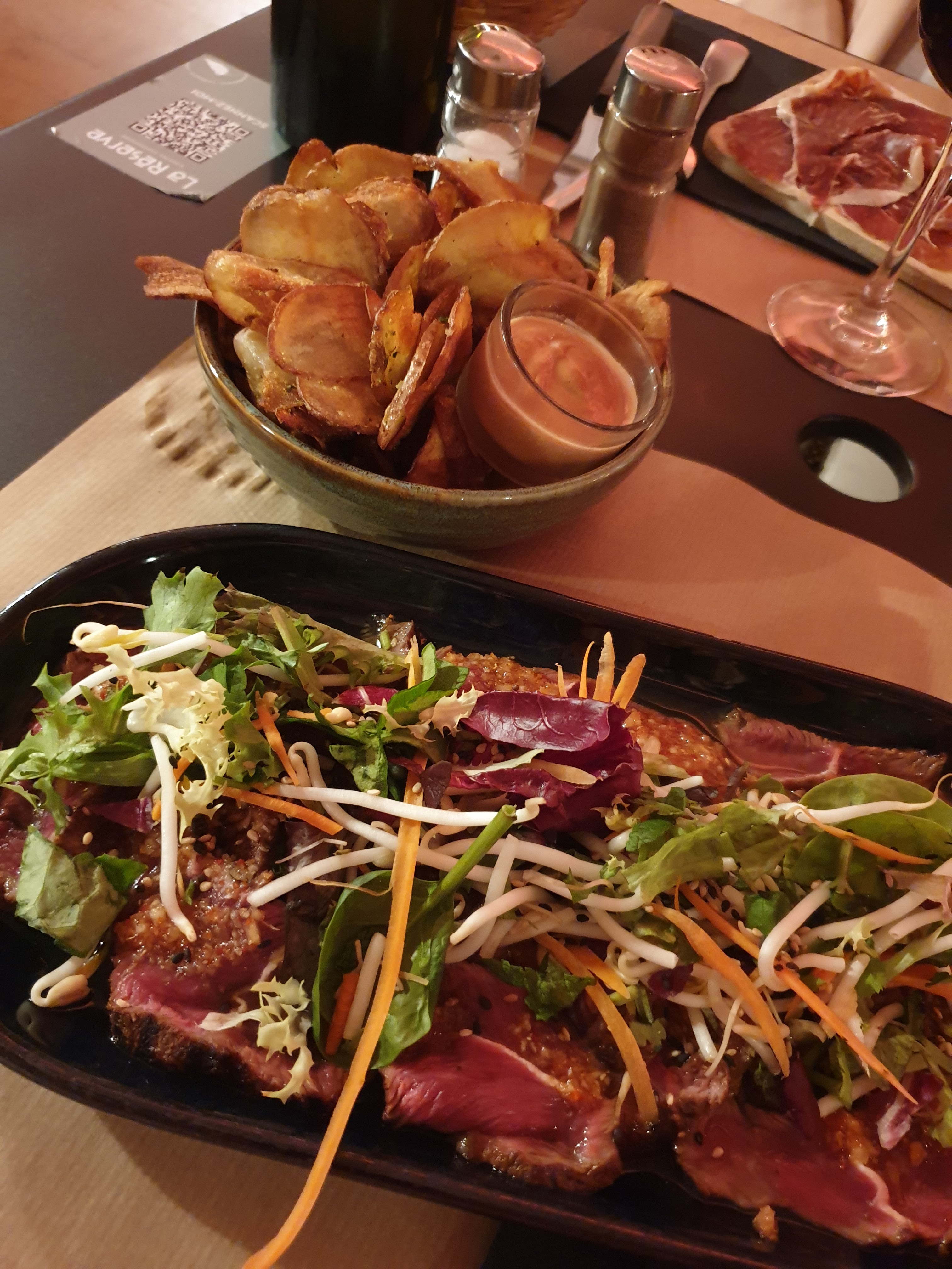 Plats très bon et de très bonne qualité mais le service laisse à désirer. C’est anormale de demander pour commander à boire ou à manger après 20 minutes assis à table ou encore moins de devoir demander des plats (tapas) qui ont été oubliés.