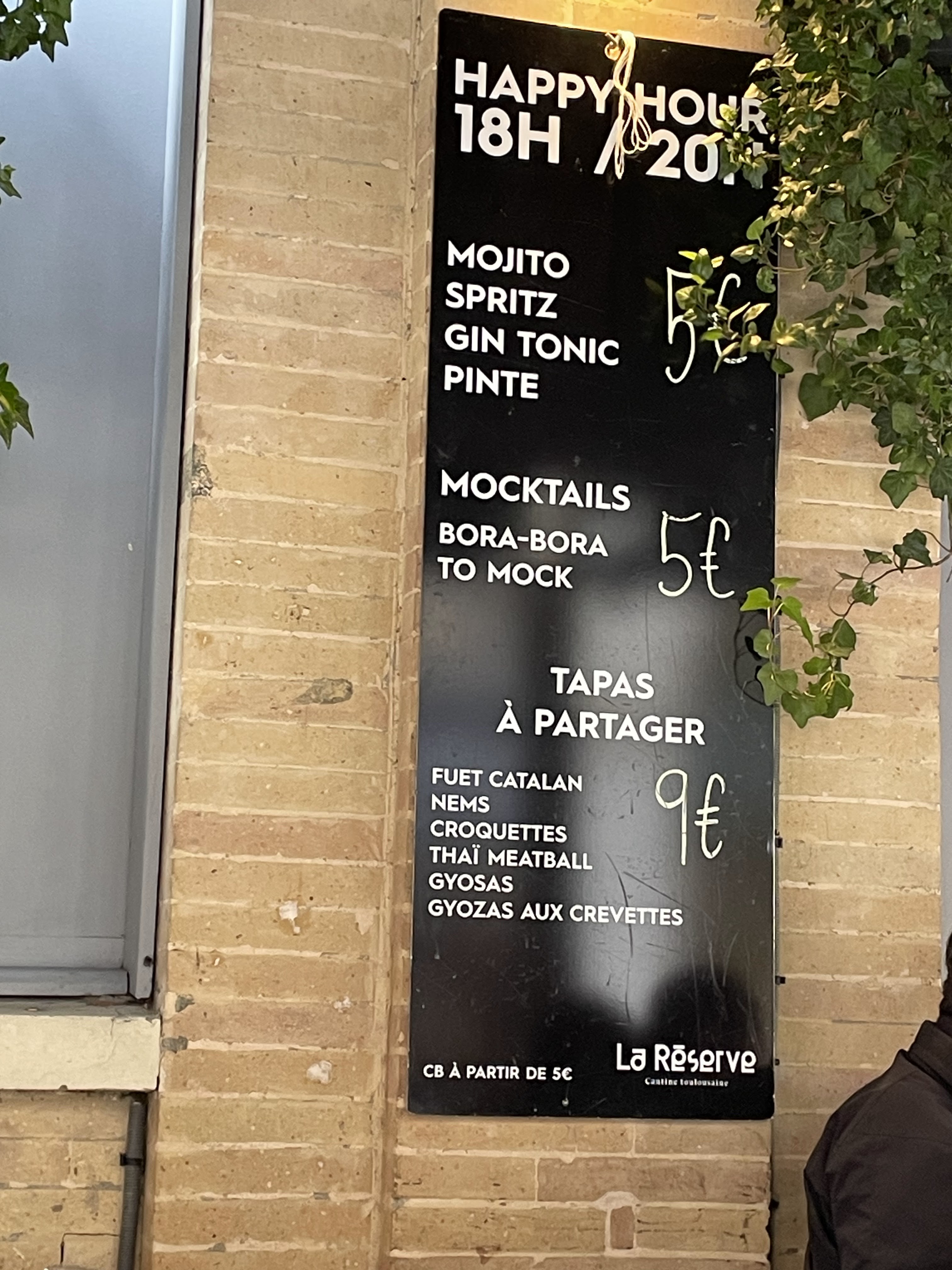Happy hour intéressant, mais boisson pas top. Toilette HS, dommage