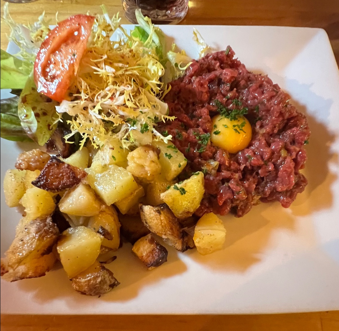 L'un des meilleurs steak tartare au monde ! Une visite incontournable si vous passez par la ville, bon vin et desserts. J'espère revenir bientôt