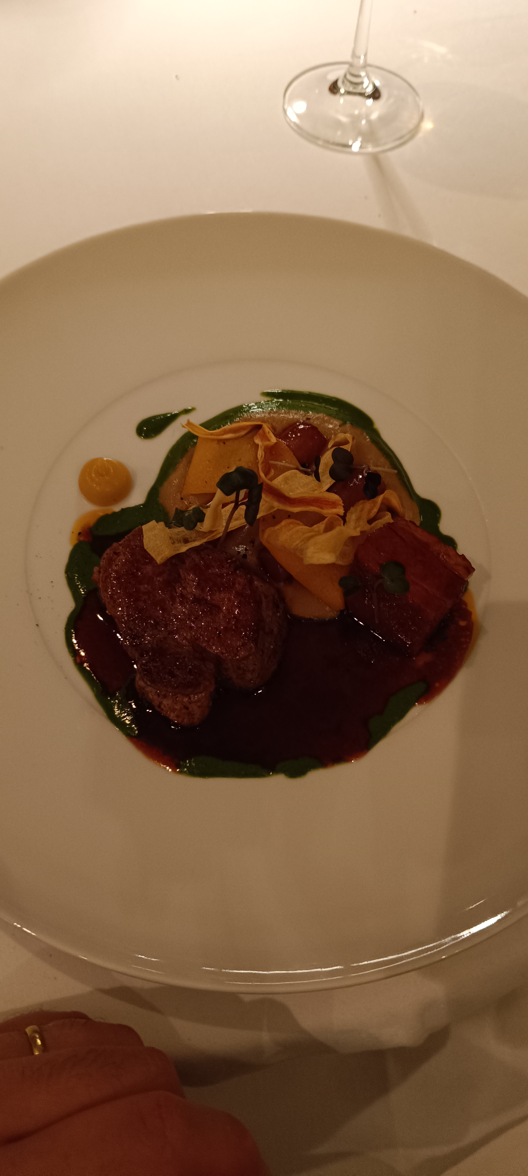 Samedi 15 octobre 2022, 20h30 nous arrivons devant l’etablissement, et quel ne fut pas pas notre etonnement lorsque nous entrâmes à l’intérieur : personne pour nous accueillir. Nous ne savions pas si nous devions continuer d’avancer un peu plus ou pas. Première impression : manque de personnel. A l’accueil d’un restaurant gastronomique, sauf erreur de ma part, il est tout de même nécessaire d’avoir une personne pour accueillir les clients, c’est une question de standing. Cela renvoie une image peu professionnelle pour un établissement avec pourtant une cuisine d’excellence. ATTENTION : personnel très aimable, plats de haute qualité, très bonne sélection de vins, pour un prix relativement correct.