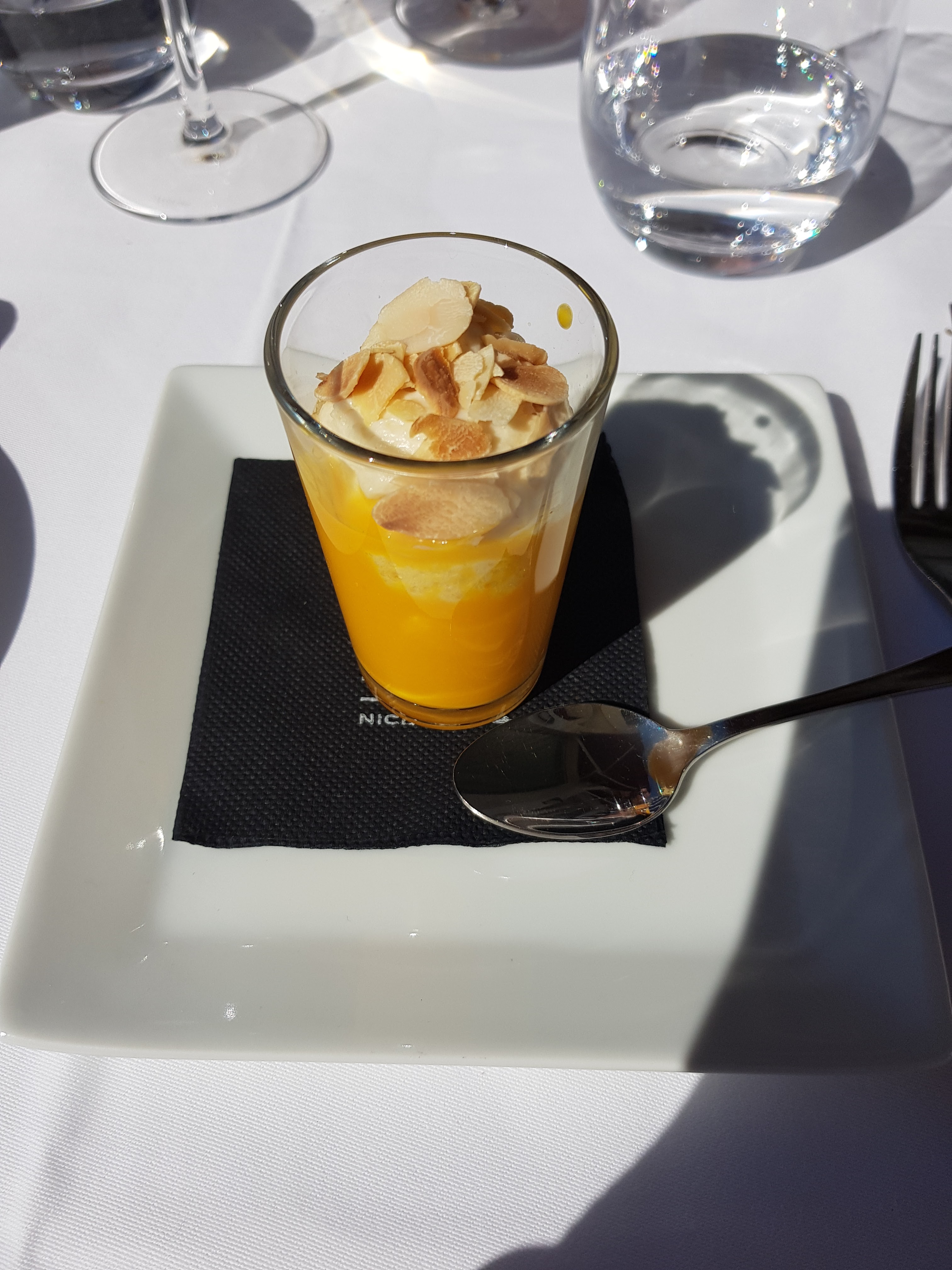 Magnifiques saveurs tout en douceur et en saveur et en onctuosité : oeuf parfait aux morilles, ris de veau, selle d'agneau et un amusant dessert autour du popcorn. Très belles assiettes, grandes saveurs. Une très belle adresse, haute cuisine, belle carte des vins, la grande classe à Nice avec une vue fantastique.