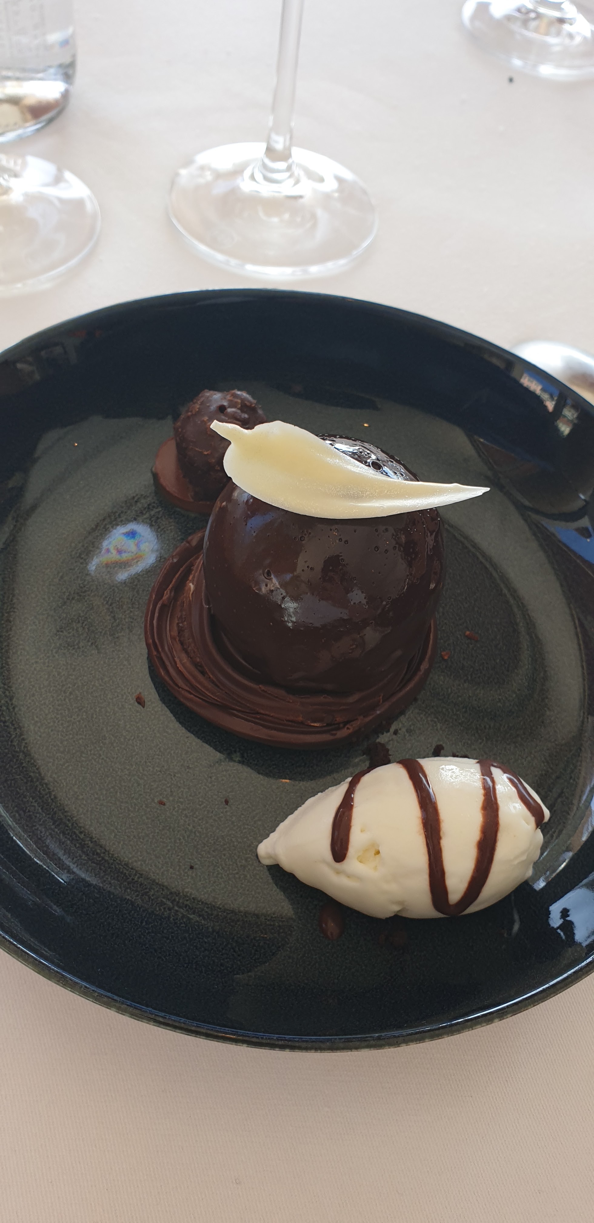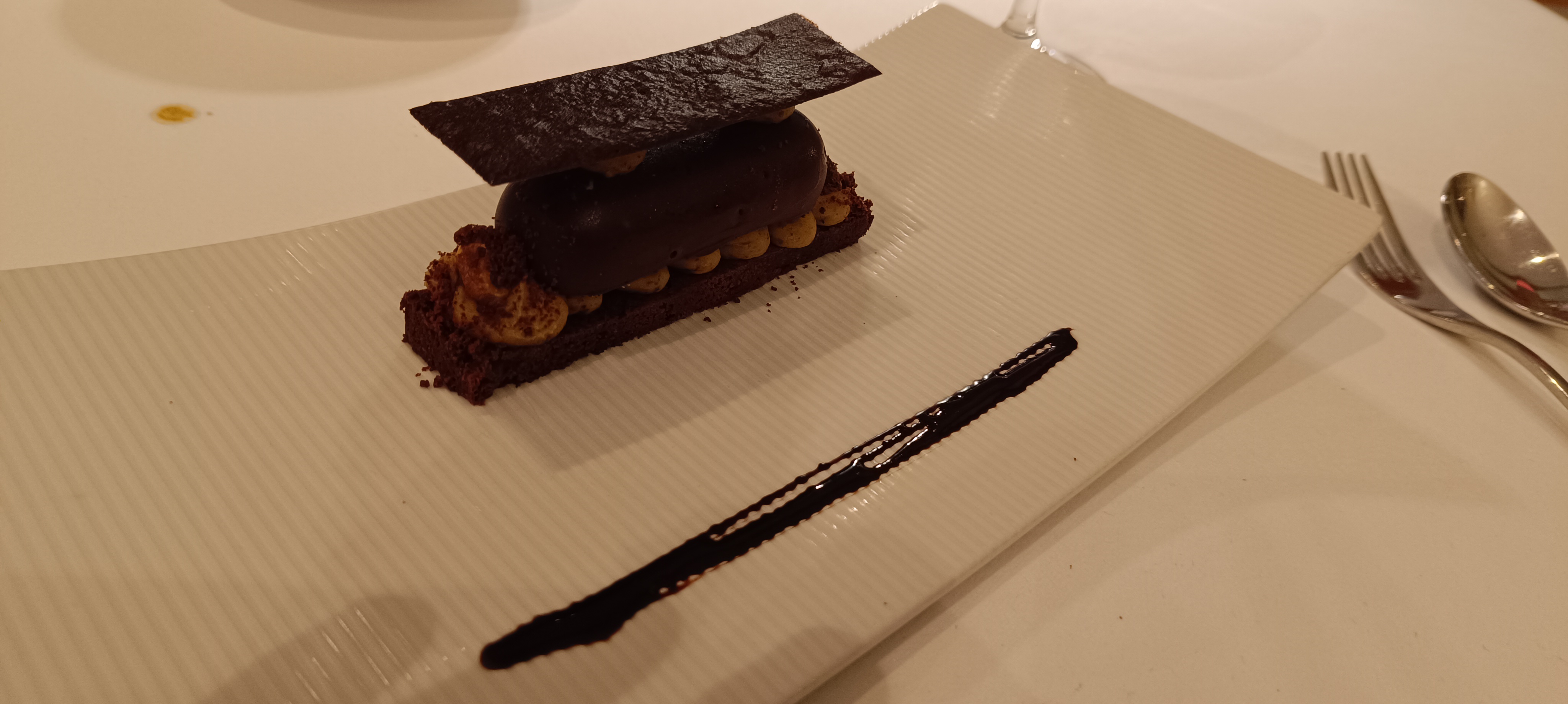 Tres déçus par nos desserts. Le dôme était très froid et le chocolat ne se cassait pas, trop épais. La mousse était presque gelée. Mon ami avait un baba au rhum, la présentation laisse à désirer. On n'a que la moitié dun baba au rhum, ce n'est même pas original, pas assez imbibé. Pour le prix, avoir de tels desserts, c'est lamentable. Desole d'être direct. Pour le reste, c'était correct