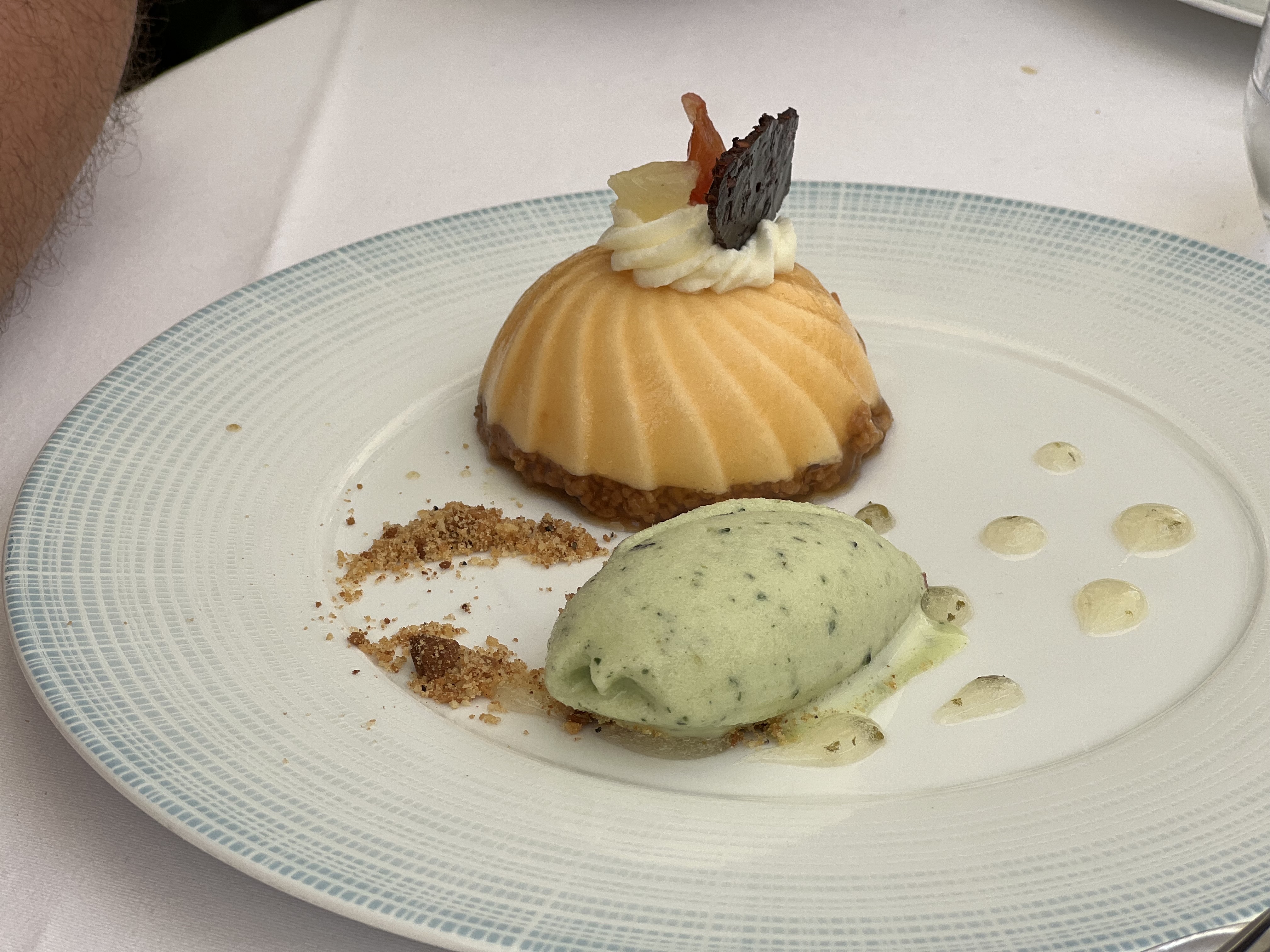 Le repas ne correspondait pas à mes goûts. Poisson un peu sec, que j'aurais préféré accompagné d'un rizotto, et là c'était des cocos.... Dessert composé de figues chaudes et glace, très bon.