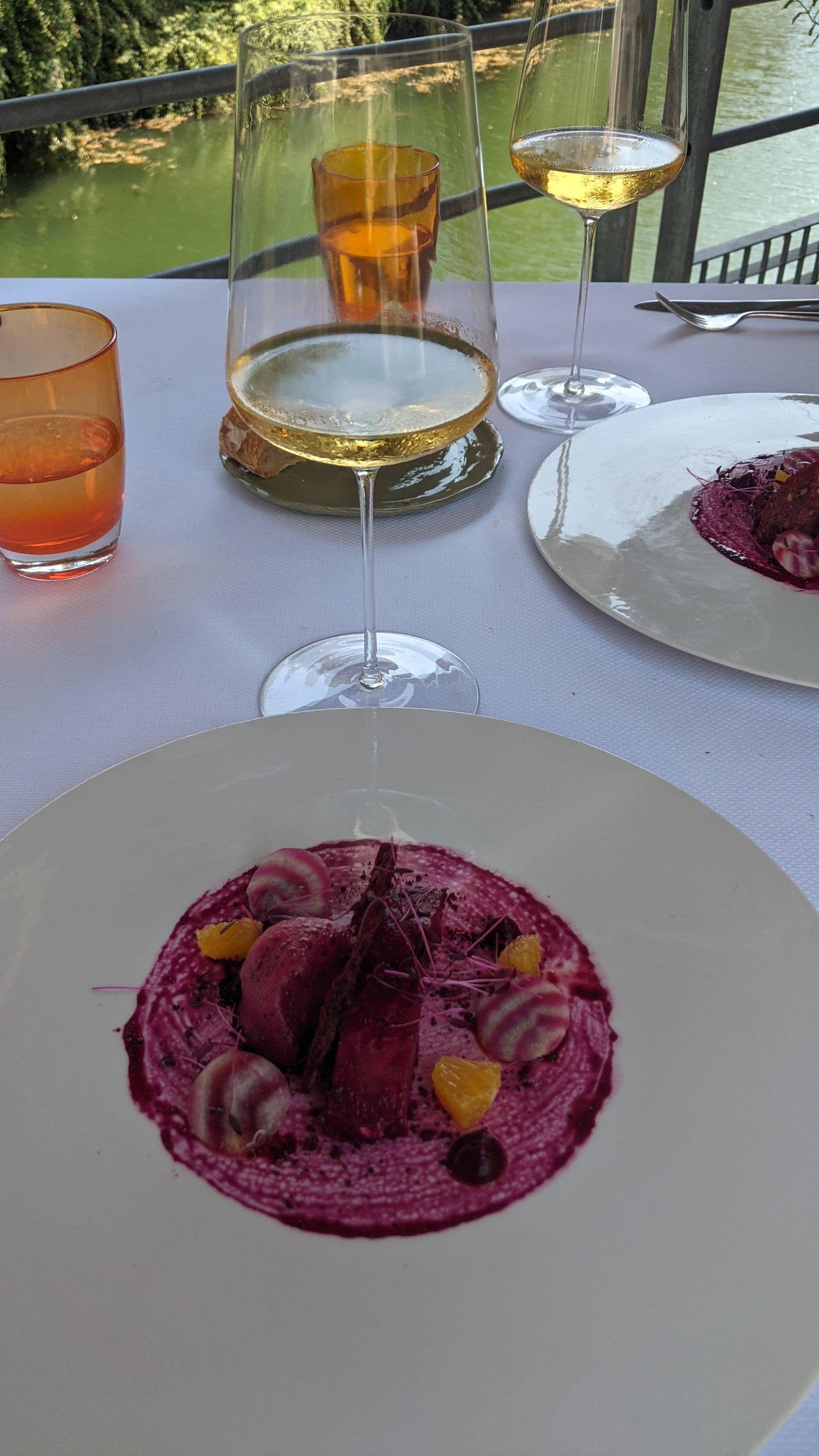 Superbe déjeuner dans ce cadre idyllique au bord du Leze. Nous reviendrons avec plaisir. Le service est parfait, et la sommelière donne de bons conseils.