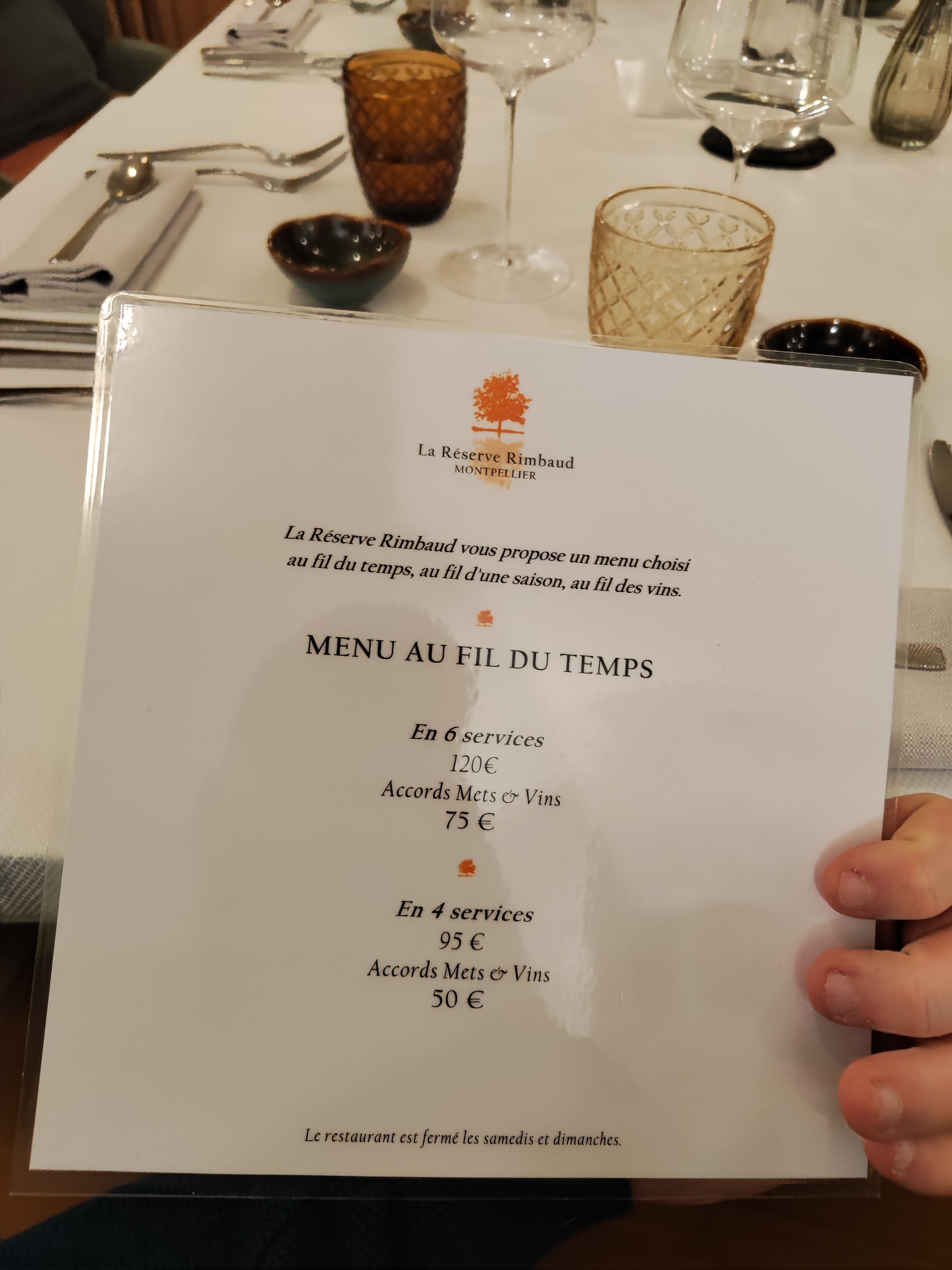 Très bon moment passé à la réserve Rimbaud. A l'arrivée, le chef passe saluer tous ses hôtes du jour. Le service est de qualité. Les plats respectent la saisonnalité des produits et sont surprenants. Pour l'accord mets et vins, j'aurais apprécié déguster plus de vins du Languedoc mais la sélection était tout de même de belle qualité.