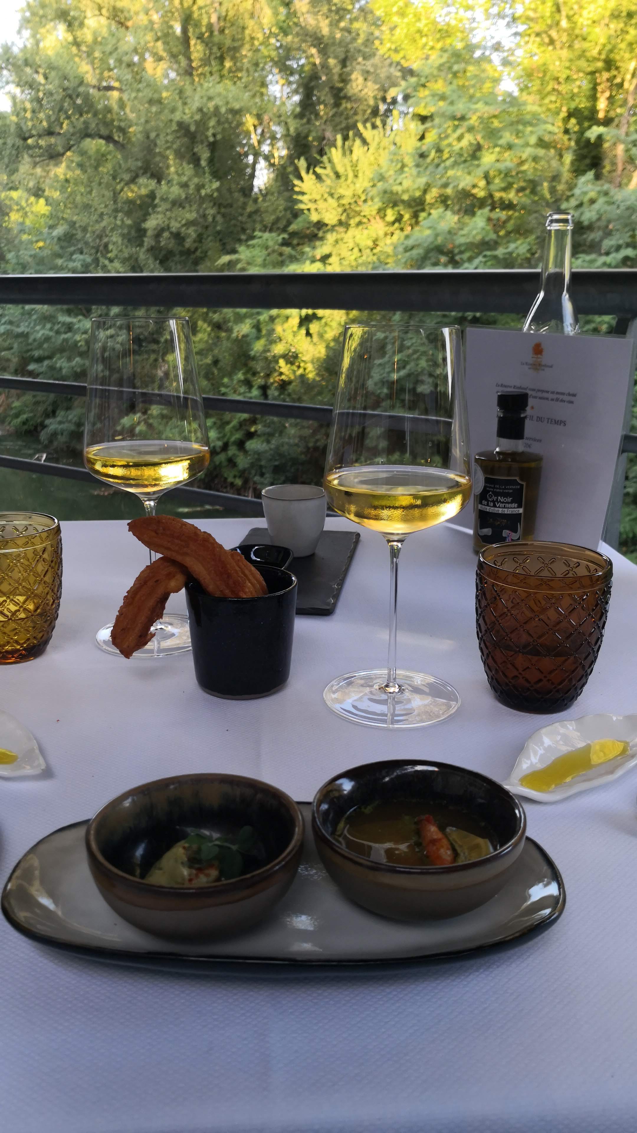 Au fil du temps et des vins Dîner en tête-à-tête en terrasse au bord du Lez avec en toile de fond un concerto pour 1000 voix d'oiseaux. Menu 6 plats sublimes aux saveurs exquises servis avec le sourire et professionalisme. Vins en accord parfait. L'endroit mérite largement son macaron. Merci pour ces bons moments.