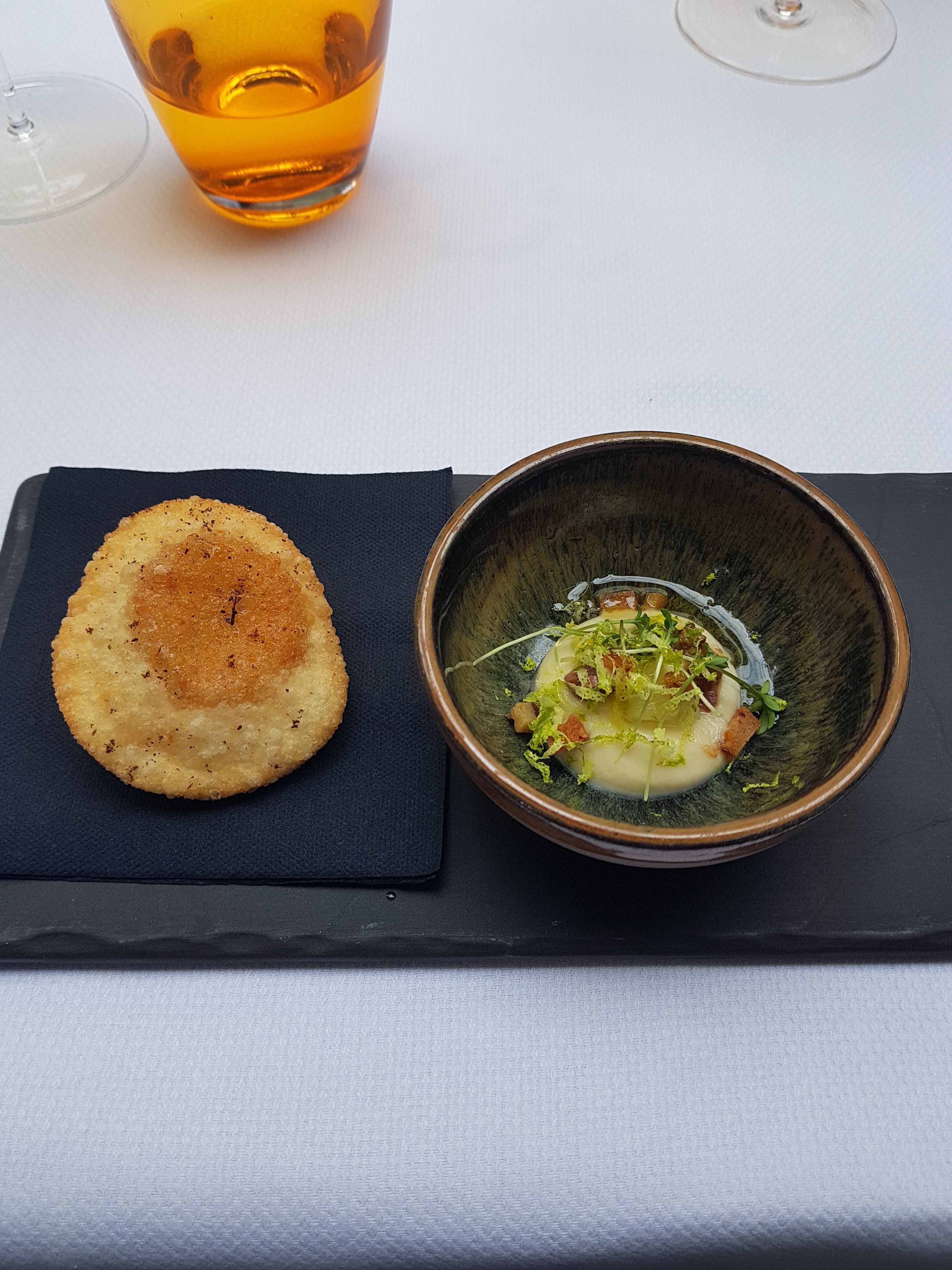 ce restaurant possède un cadre très agréable et au niveau des plats, c’était incroyable. le vin blanc mousseux que l’on m’a conseillé était également très bon. le point négatif était notre serveur qui se permettait de parler à ses collègues comme si nous n’étions pas là avec un language grossier. autant ne pas travailler dans un restaurant étoilé si c’est pour parler comme une racaille ^^