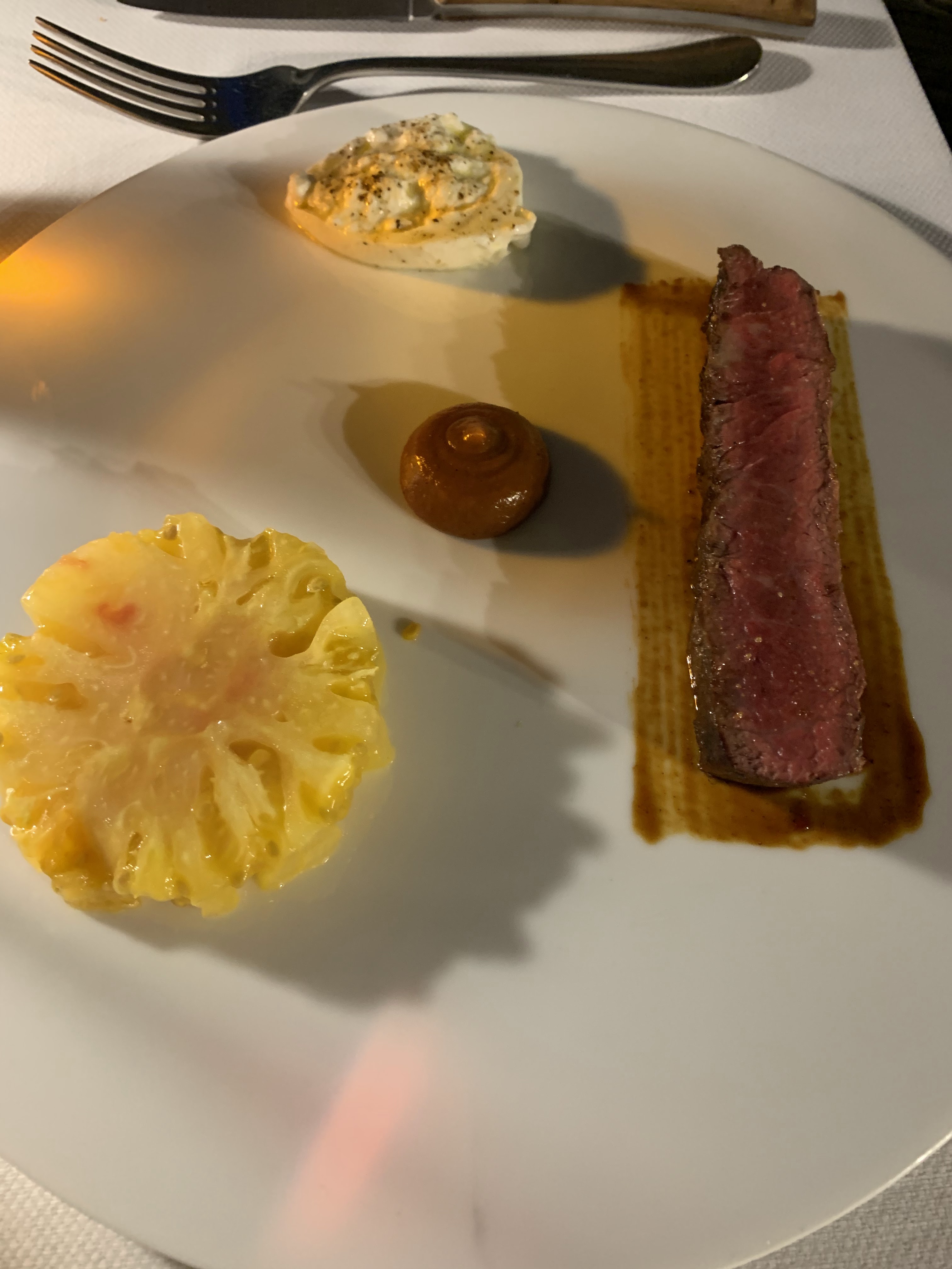 Repas très agréable cependant déçu au niveau de la mise en bouche et de l entree car cela étais fade pas du tout relever notamment le tartare de veau. Après vue agréable et service parfait