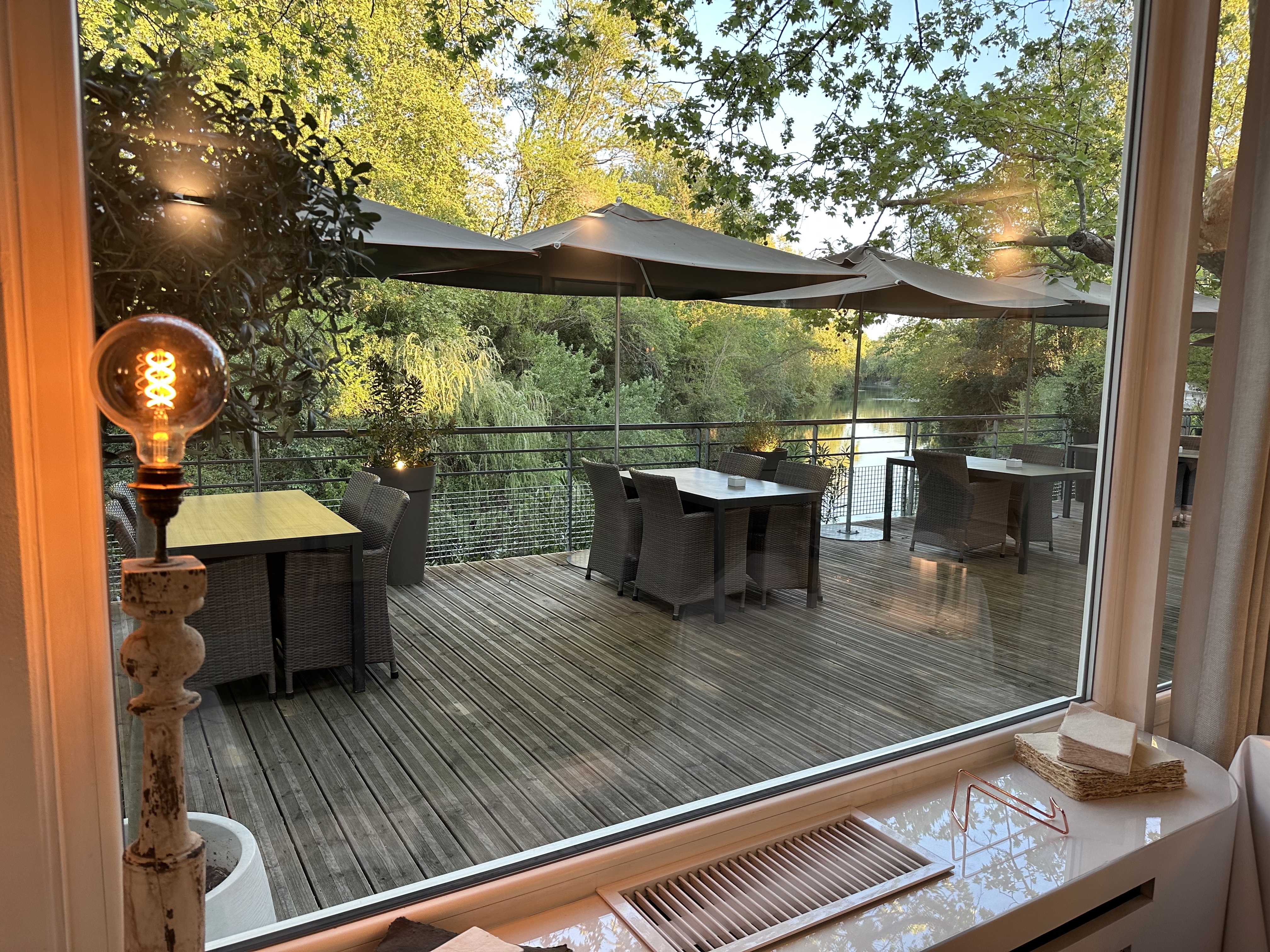Un beau cadre au bord de la rivière. Les plats sont de bonnes qualité et les suggestions de vins accompagnant les plats sont judicieux. L'addition reste un peu supérieur à l'attend.