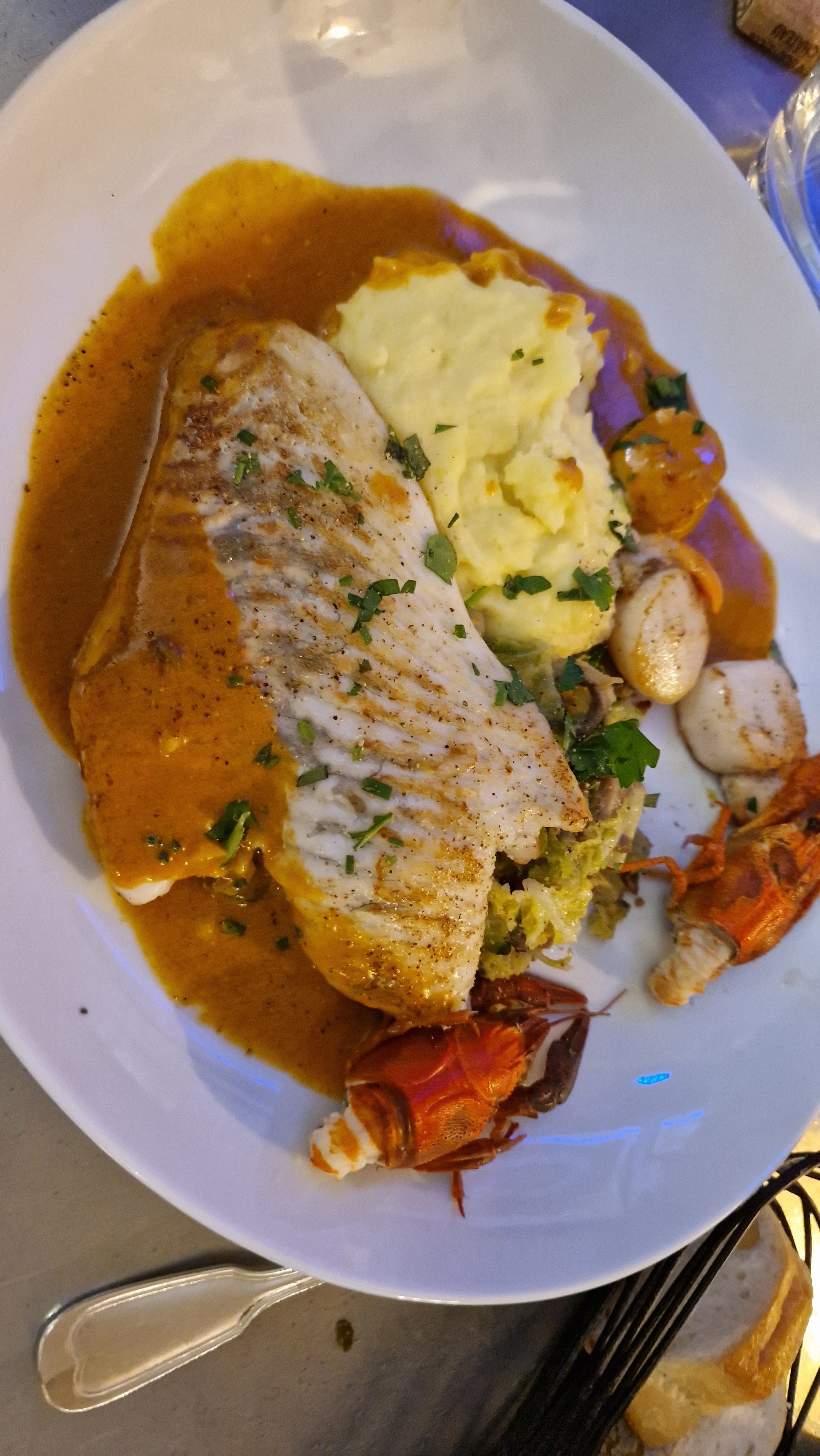 Feuilleté de turbo excellent (38e) Ambiance conviviale et service authentique. Je recommande fortement.