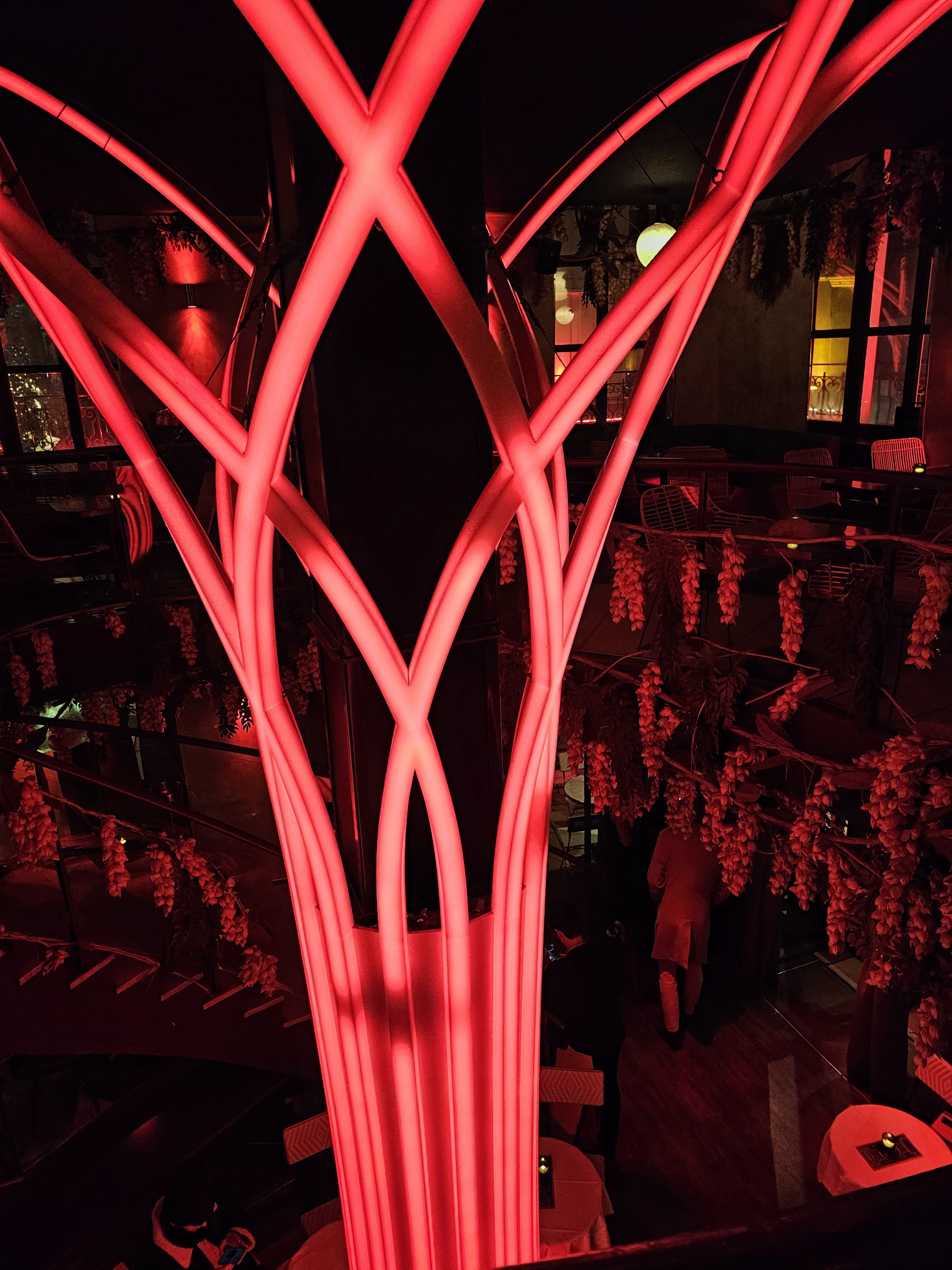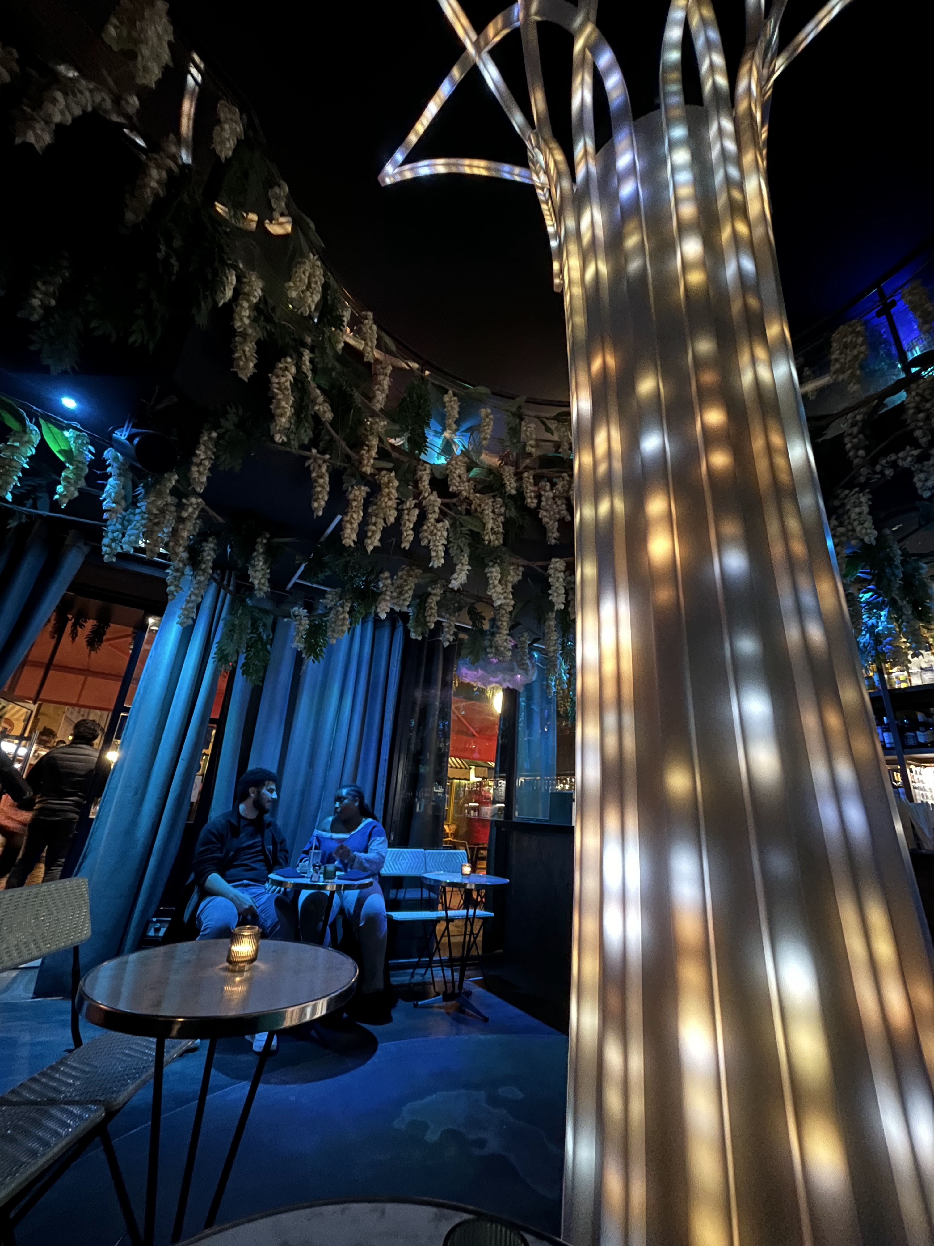 La décoration fait sensation ! C’est ce qui nous as fait choisir ce lieu pour une soirée entre amis. Mais lors de notre arrivée, on a eu au moins 3 personnes avant de trouver enfin notre table, réservée avec une empreinte bancaire. La place n’est pas faite pour les grands, les tables étant basses, les jambes passent difficilement, ce qui rend les déplacements difficiles. Voulant optimiser les espaces, le confort est laissé de côté. C’est dommage. Les plats et les tapas sont très bons, mais ce n’est pas leur spécialité. Les cocktails sont très bien exécutés, malgré une diminution de la taille des verres suivant l’avancement de la soirée. Même si la dose d’alcool ne change pas, cela nous laisse un goût amer. La musique pouvait être adéquate pour danser jusqu’au bout de la nuit, si l’on a pas de style de musique en particulier. D’Axel Red à DJ Snake, on a vraiment rien loupé.