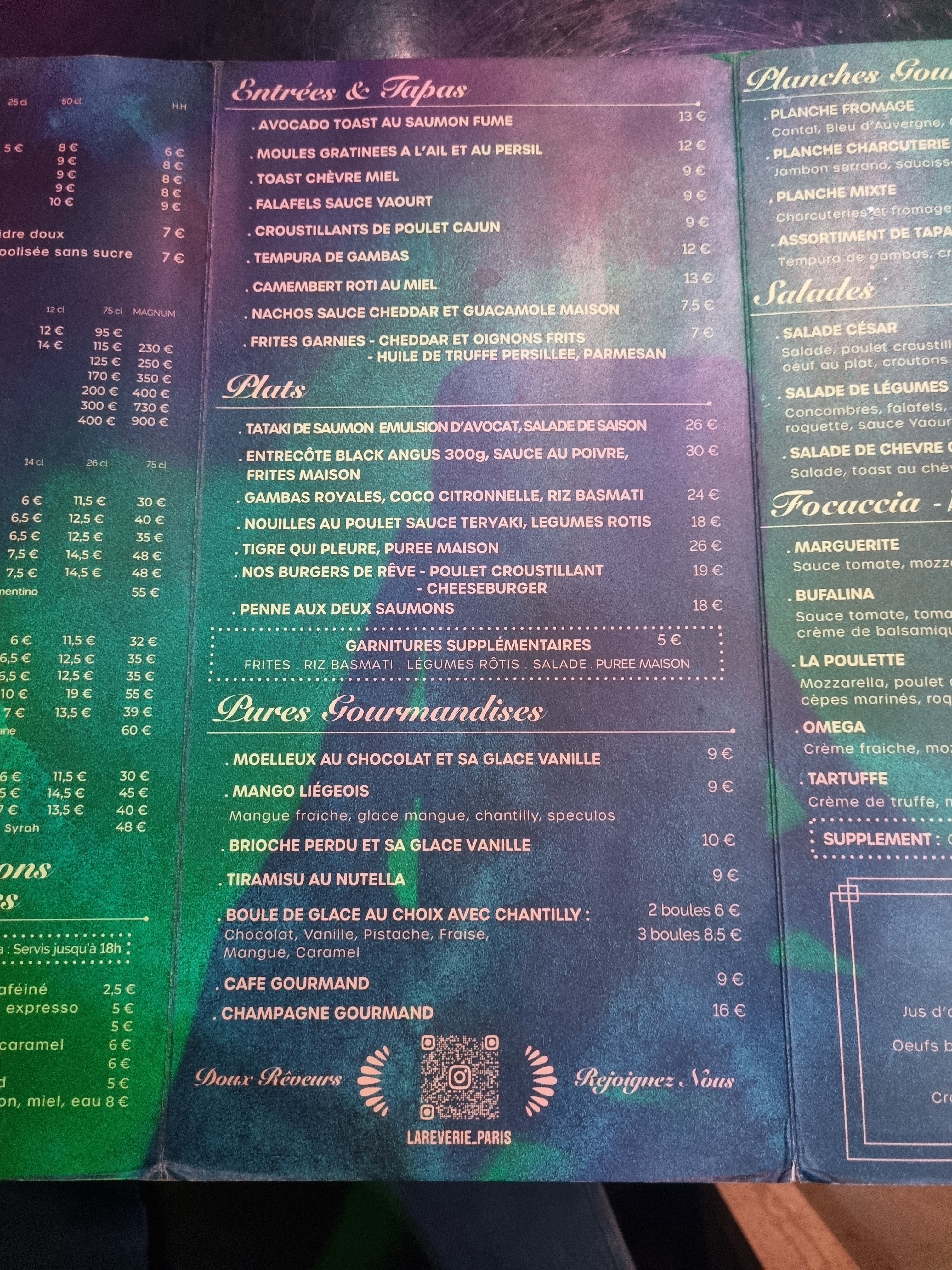 Excellemment reçu par Karim à l'entrée, Sam barman hors pair et un pur Artiste dans son domaine et je pèse mes mots et Lucien le responsable ultra compétent, beau gosse, classy et supercool, l'équipe de la Rêverie est juste au top (mon spot préféré à Bastille), en un mot comme en cent la classe à Palavas, Jouy-en-Josas et Dallas réunis, franchement ouate else 😚 épicétout