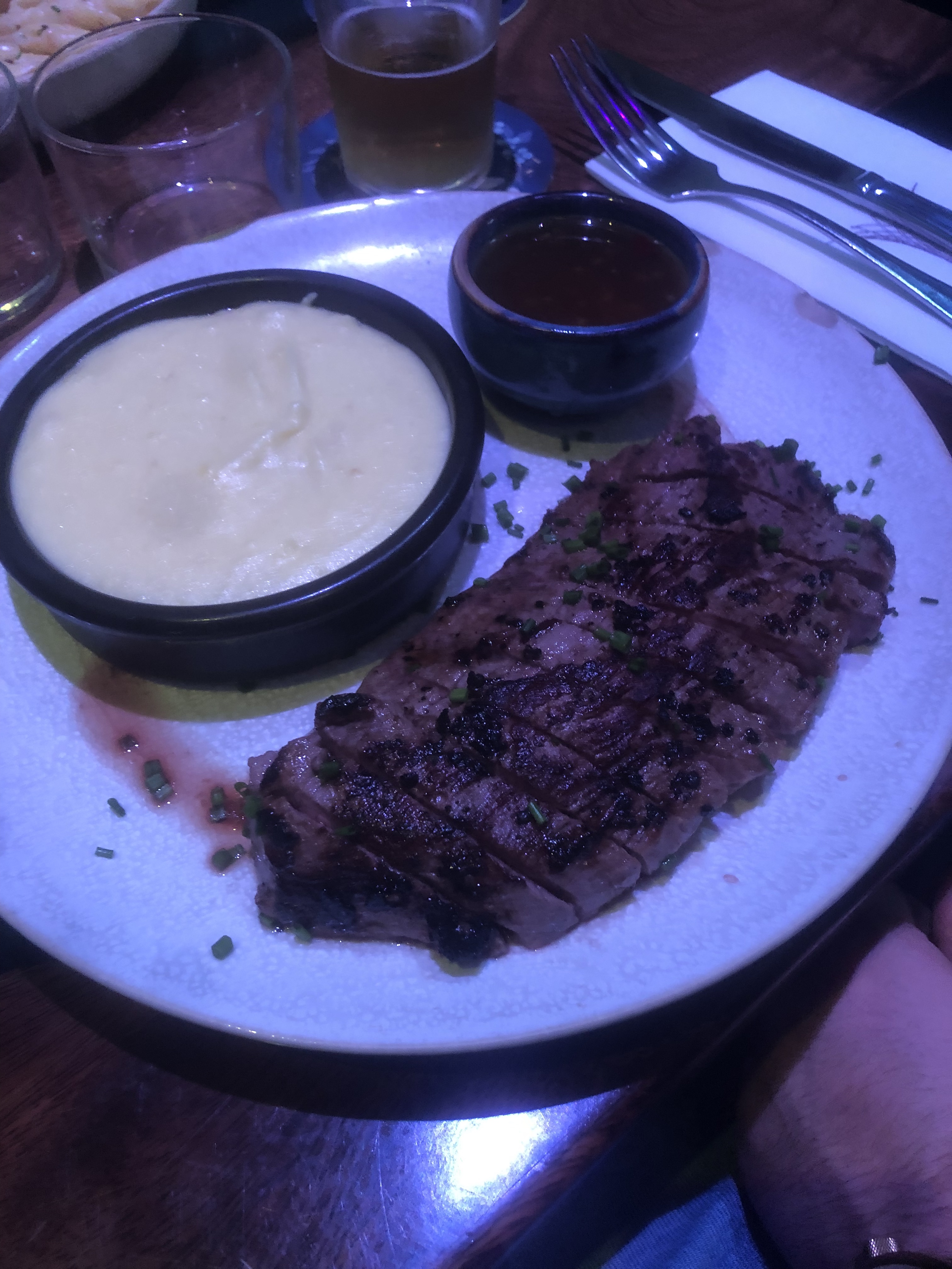 Très bonne expériences dans ce Bar-restaurant. Service impeccable. Pour les plats, l’entrecôte est très généreuse et la cuisson était parfaite. Le tigre qui pleure était bon mais malheureusement pas assez relevé. Les pennes au deux saumons part contre n’était pas copieux..