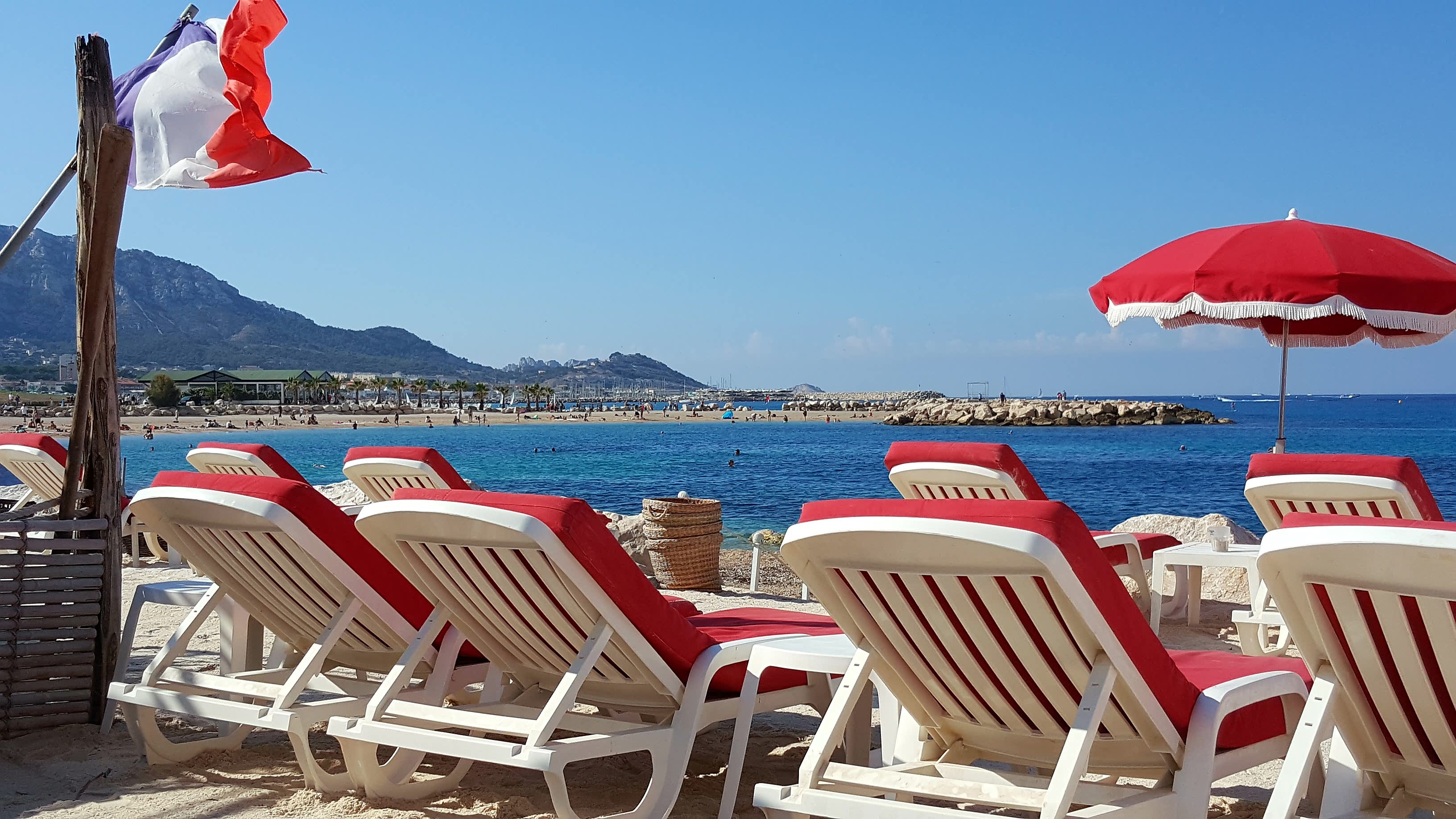 Attrape touriste. Établissements voisins a essayer ou bien d'autres plages privees a Marseille et les alentours. L accueil et le service sont quasi inexistants. Mais le plus décevant est le tarif, compte tenu de l emplacement et du service cela ne vaut pas le coup de payer 24 euros une salade, 5 euros un coca et le top c'est 10 euros le thé glace (annoncé comme fait maison et XXL), parasol payant en plus du transat. Pas mon genre de mettre des avis mais la, très déçue. La notion du XXL et juste un verre ... quand on voyage en Amérique du Nord on sait ce qu est un XXL. Et liptinoc mdr.