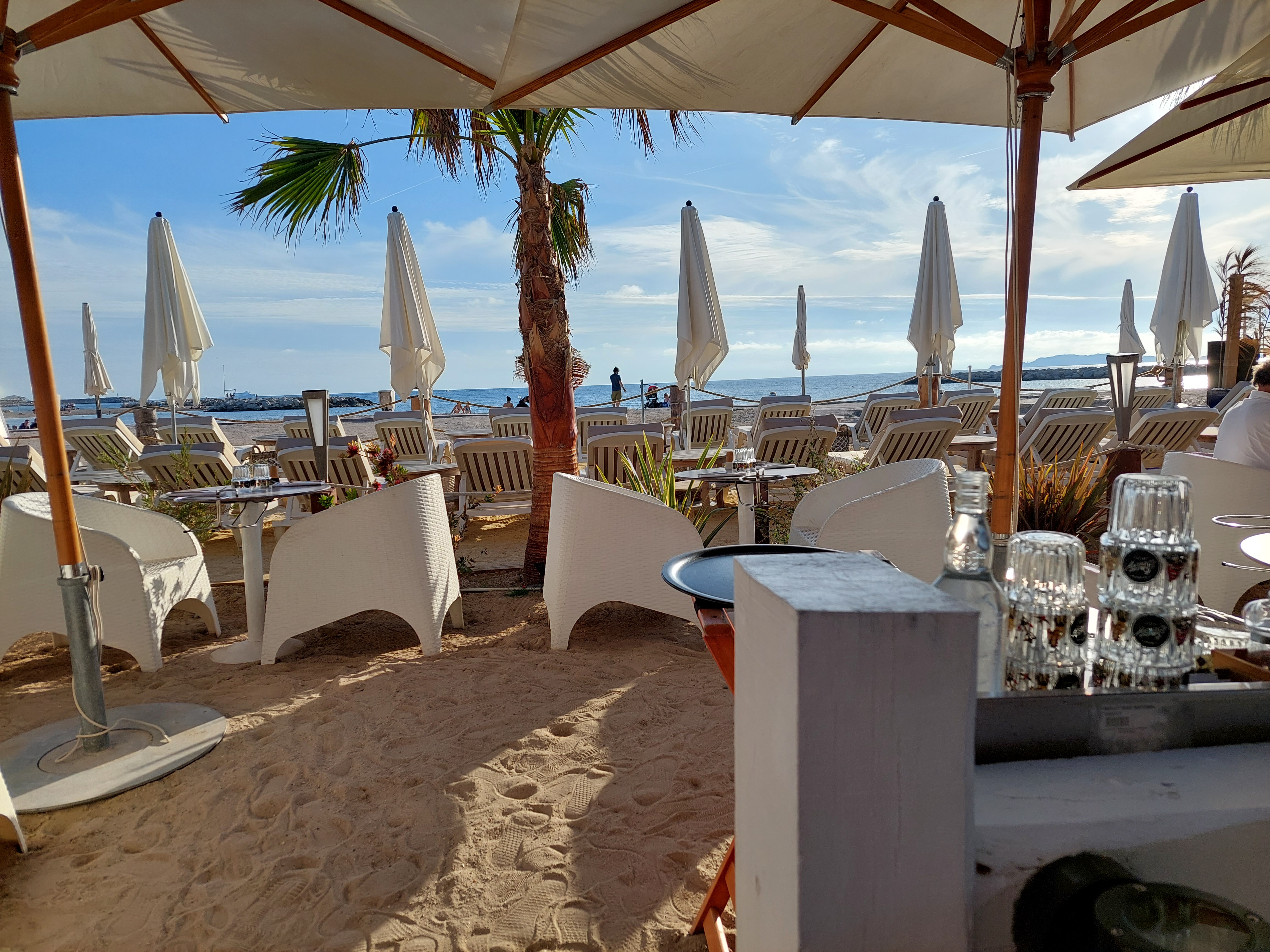 Plage privée : staff sympathique et disponible. Coté carte : c'est très très cher pour ce que c'est ! Cuisine très banale, avec des produits industriels dans un cadre pas fou non plus vs les concurrents autour