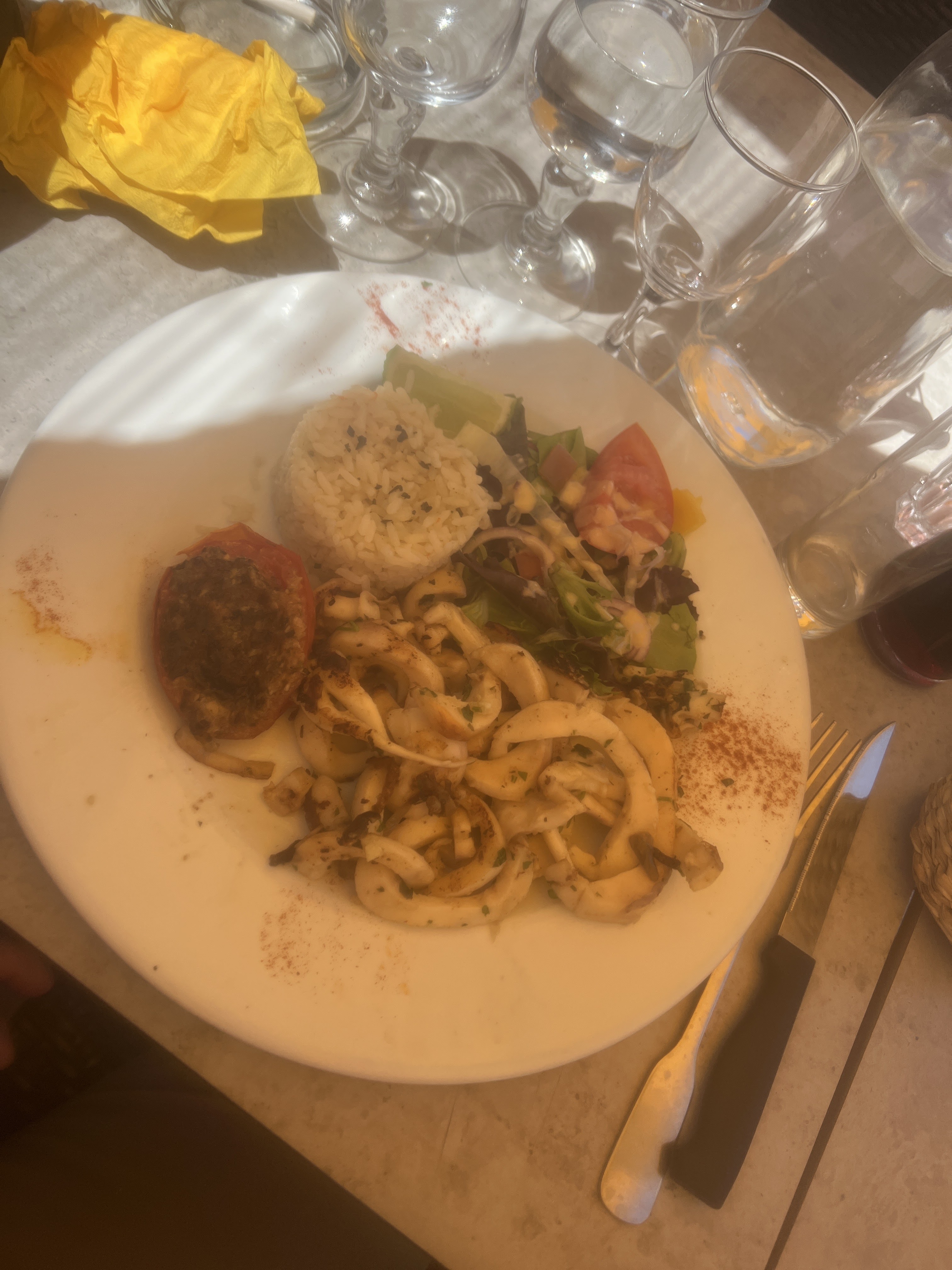 Dommage, l'accueil était très sympa, de la part du patron comme des jeunes serveuses/serveurs mais c'était le seul point positif. Déçus du repas. Viande demandée saignante arrivée limite bien cuite, aïoli OK mais sans +, temps d'attente entre les plats trop longs et comme dit dans un précédent commentaire repère de kékés. Je ne recommande pas.