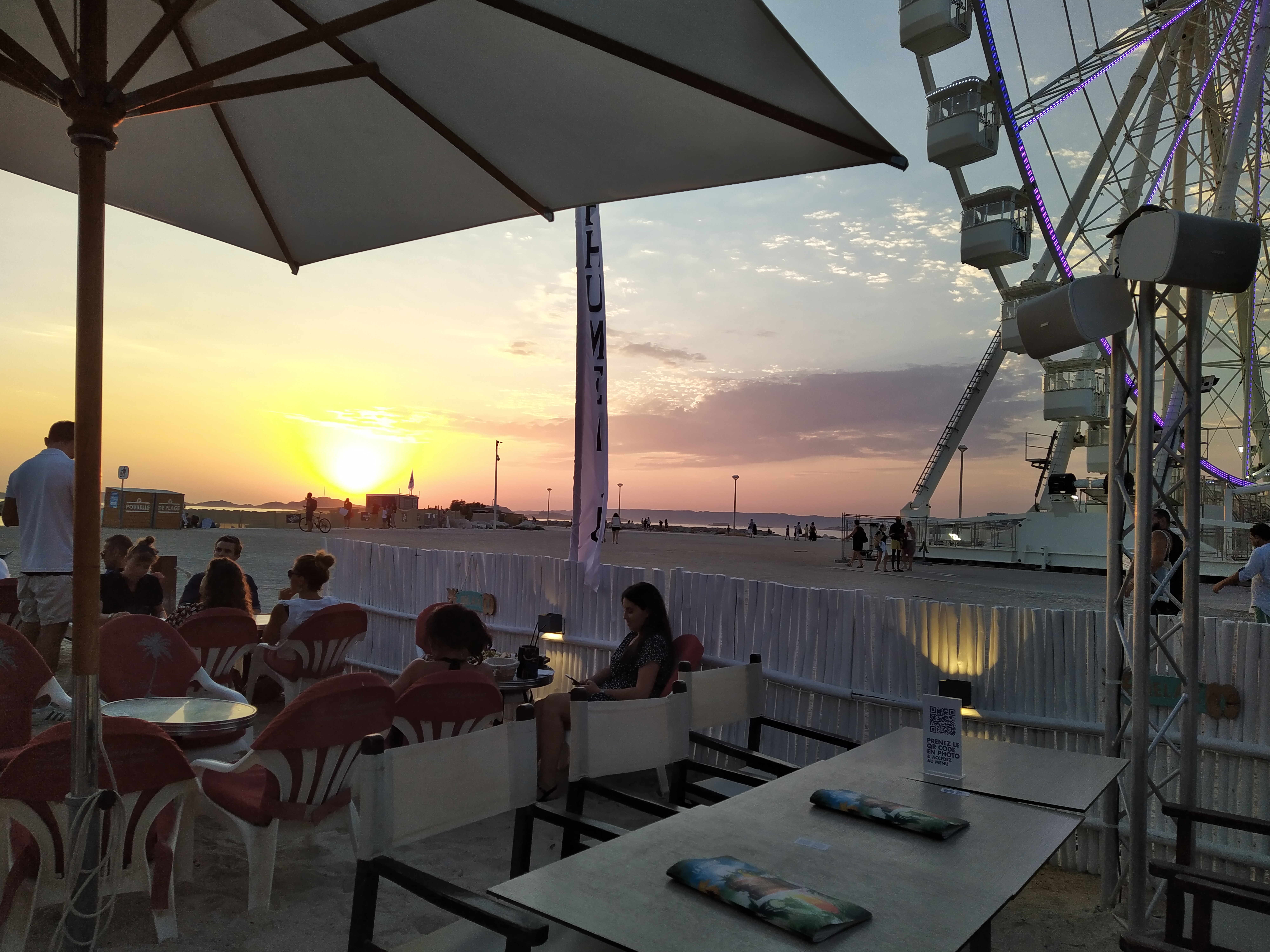 Lieu sur la plage. Service moyen ou il faut parler marseillais. Les chaises et tables sont pas top mais bon ...