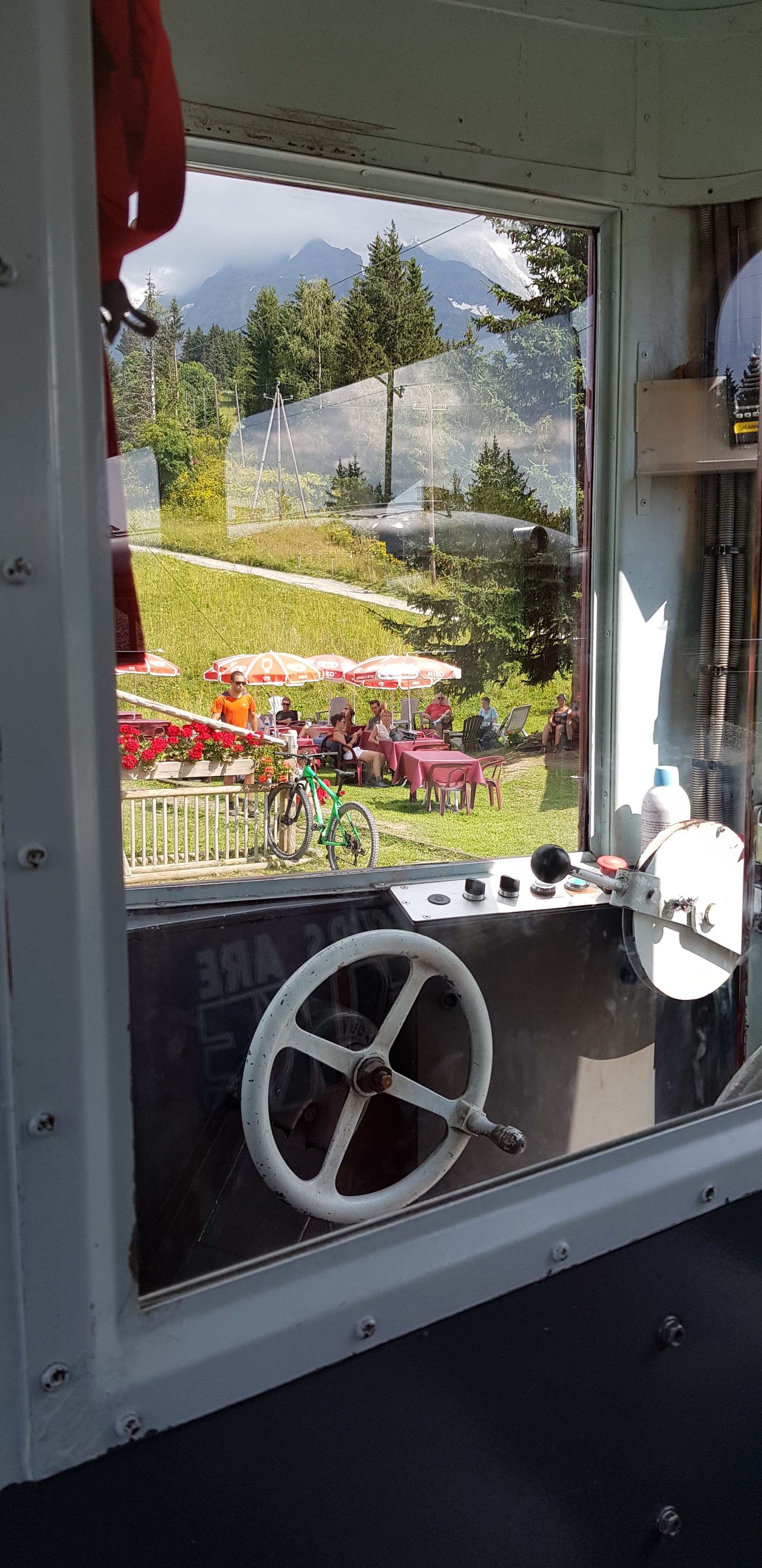 Serveuses agréables avec nous, même si on a du un peu leur faire signe qu'on était la. Repas simple mais bon. Très bon chèvre dans la salade. Endroit très sympa avec le tramway du mont blanc qui passe à côté.