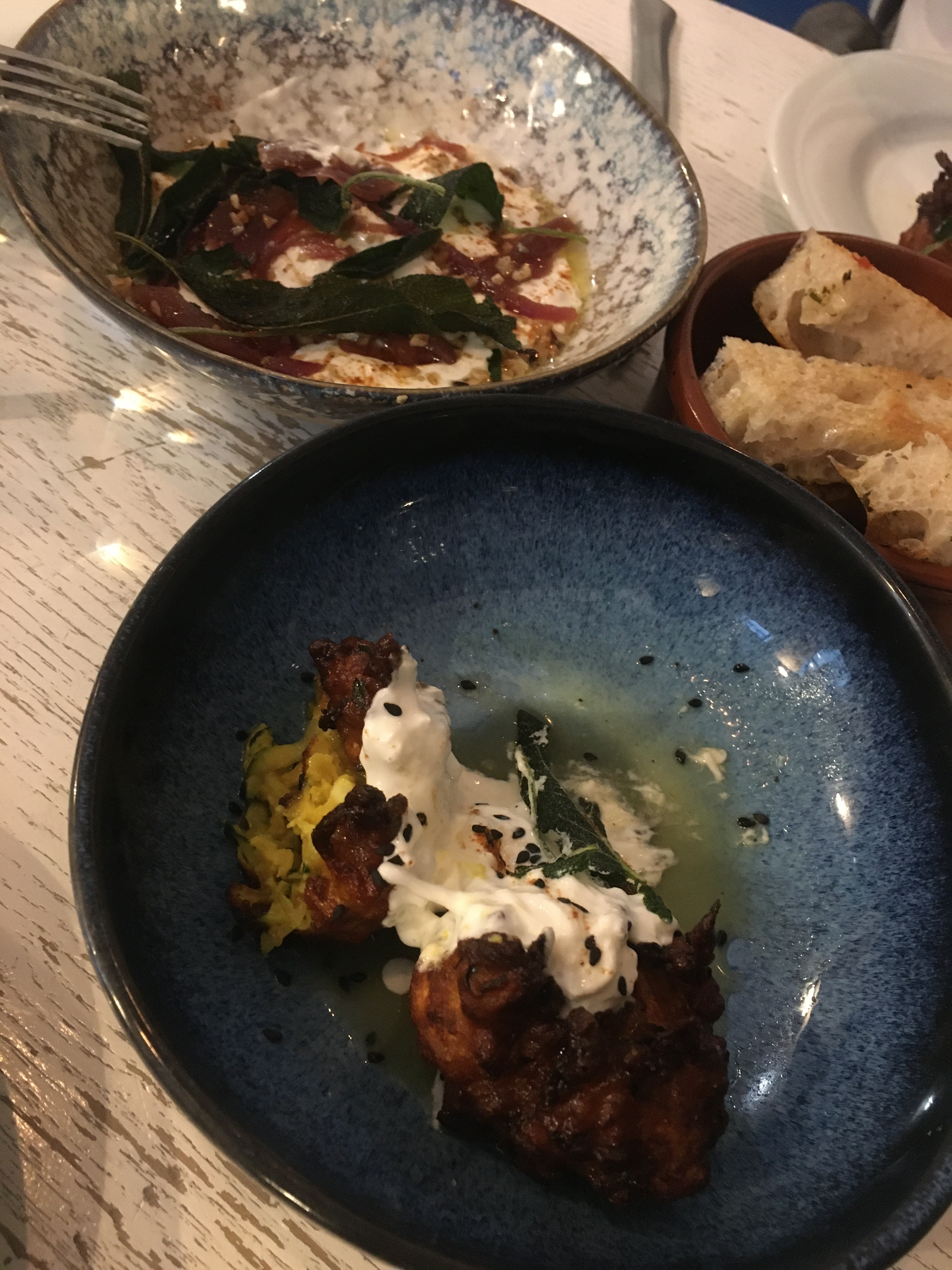 Coup de cœur pour ce petit restaurant italien dans lequel on partage des “tapas” non seulement excellentes mais aussi copieuses. La carte n’est pas trop longue, les produits sont frais et de qualité, les associations de saveurs sont maîtrisées, la focaccia est à tomber. Conseil : choisir 2 à 3 plats (salés/sucrés) par personne, les pizzas sont les plus copieuses Seul bémol : nous avions réservé mais avons dû être installées sur une table et des chaises dépliantes dans un recoin isolé du restaurant. Sûrement un surbooking ce soir là, mais il faudrait peut être ouvrir moins de tables à la réservation pour être sûrs de pouvoir placer tout le monde en salle :) Nous avons passé une belle soirée tout de même et y reviendrons avec plaisir.