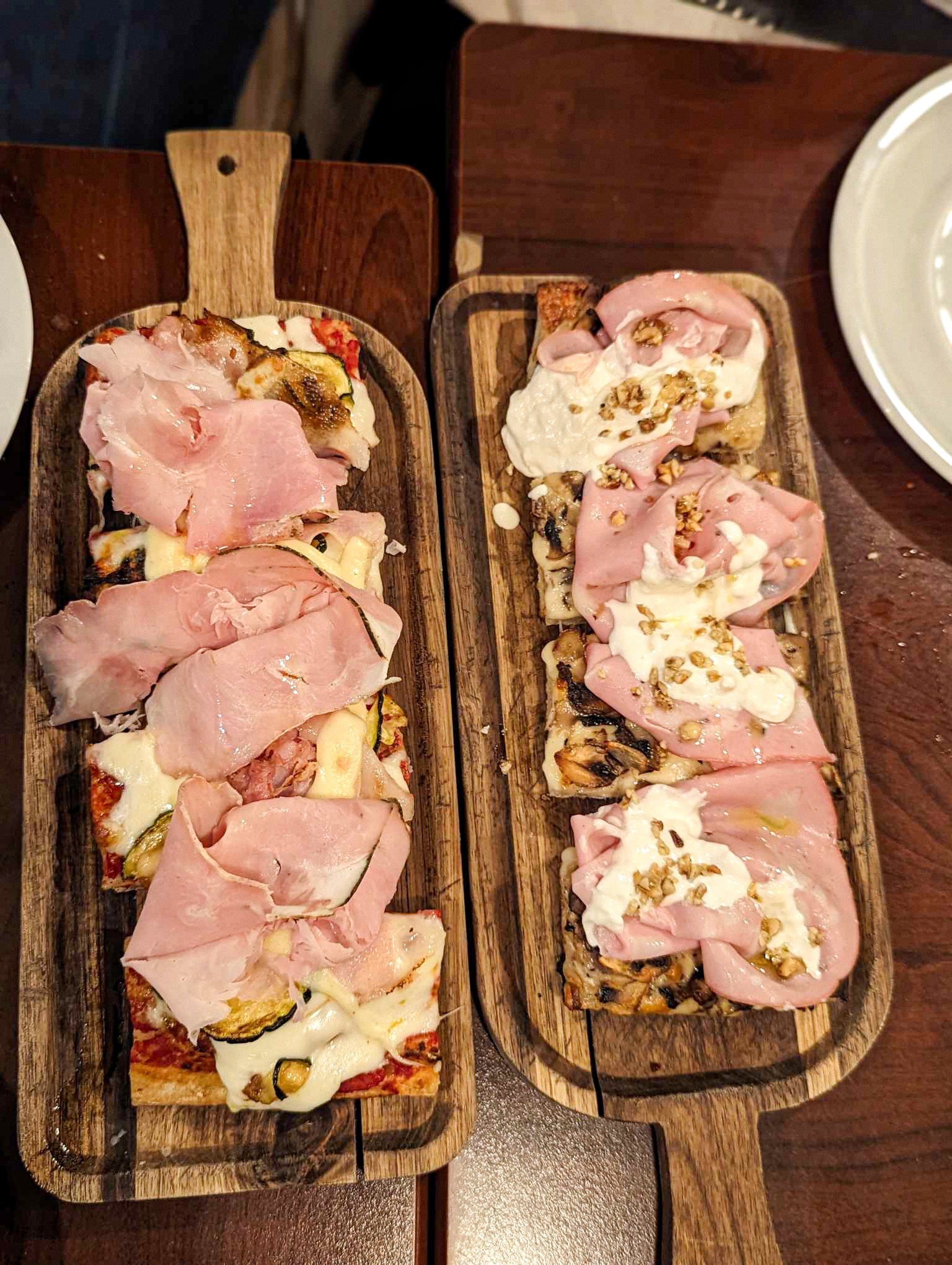 Alors oui c’est bon mais…. Très bruyant, prétentieux, et très cher parce qu’il n’y a rien ou presque sans « l’assiette » (la planche à découper). Mais il y a du monde, c’est bien rempli oui… Moi perso, je préfère les pizzas rondes, il y en plus et ça revient beaucoup moins cher.
