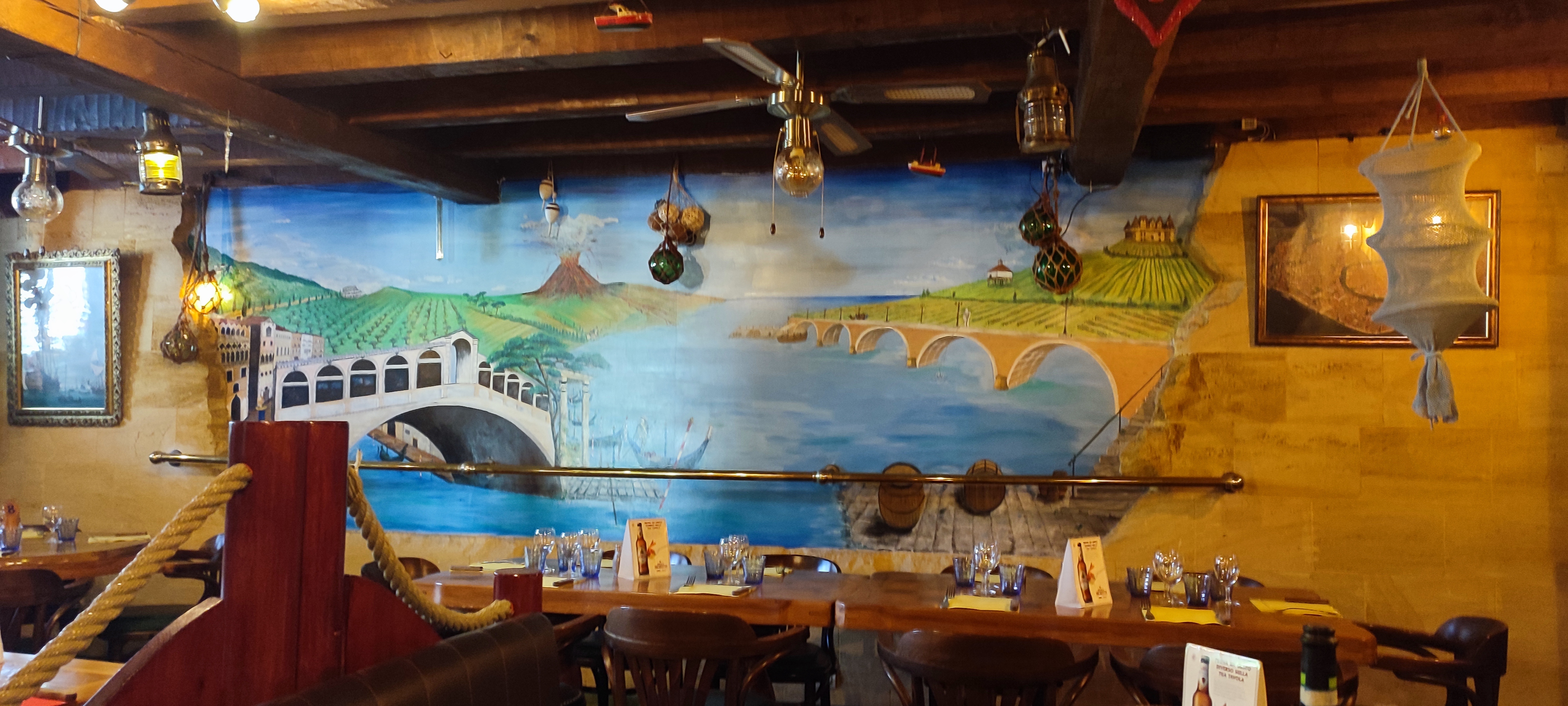 Cadre atypique très agréable pour qui aime l univers des bateaux Bonne cuisine italienne Établissement à connaître ou à redécouvrir à Bergerac