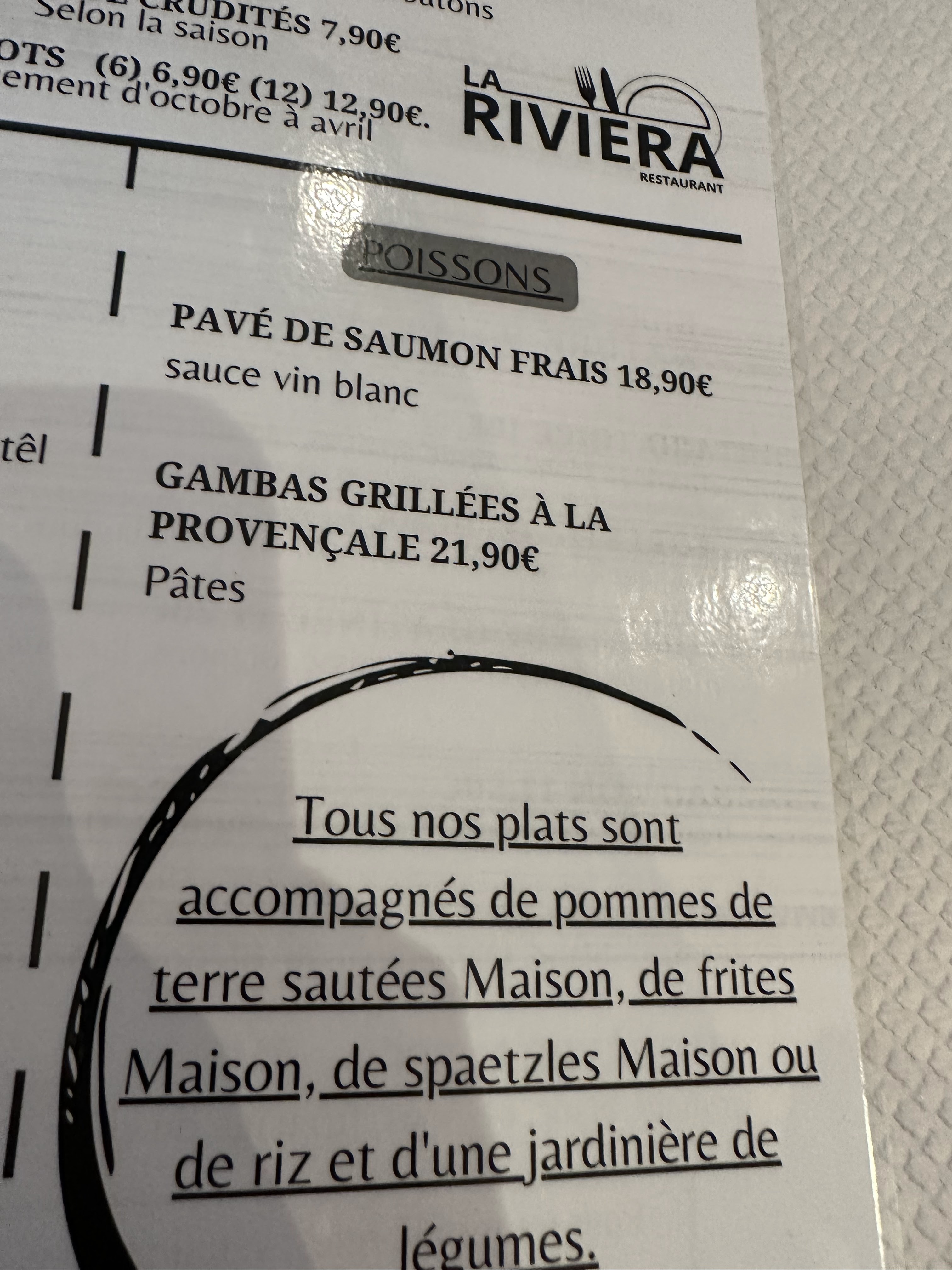 On ne peut dire que de bonnes choses sur La Riviera. La cuisine est excellente, un vrai régal. Pour y être aller à plusieurs reprises, tous les plats goutés étaient délicieux, les produits sont frais et de bonnes qualités. L'accueil et le service sont parfaits, l'ambiance est chaleureuse.
