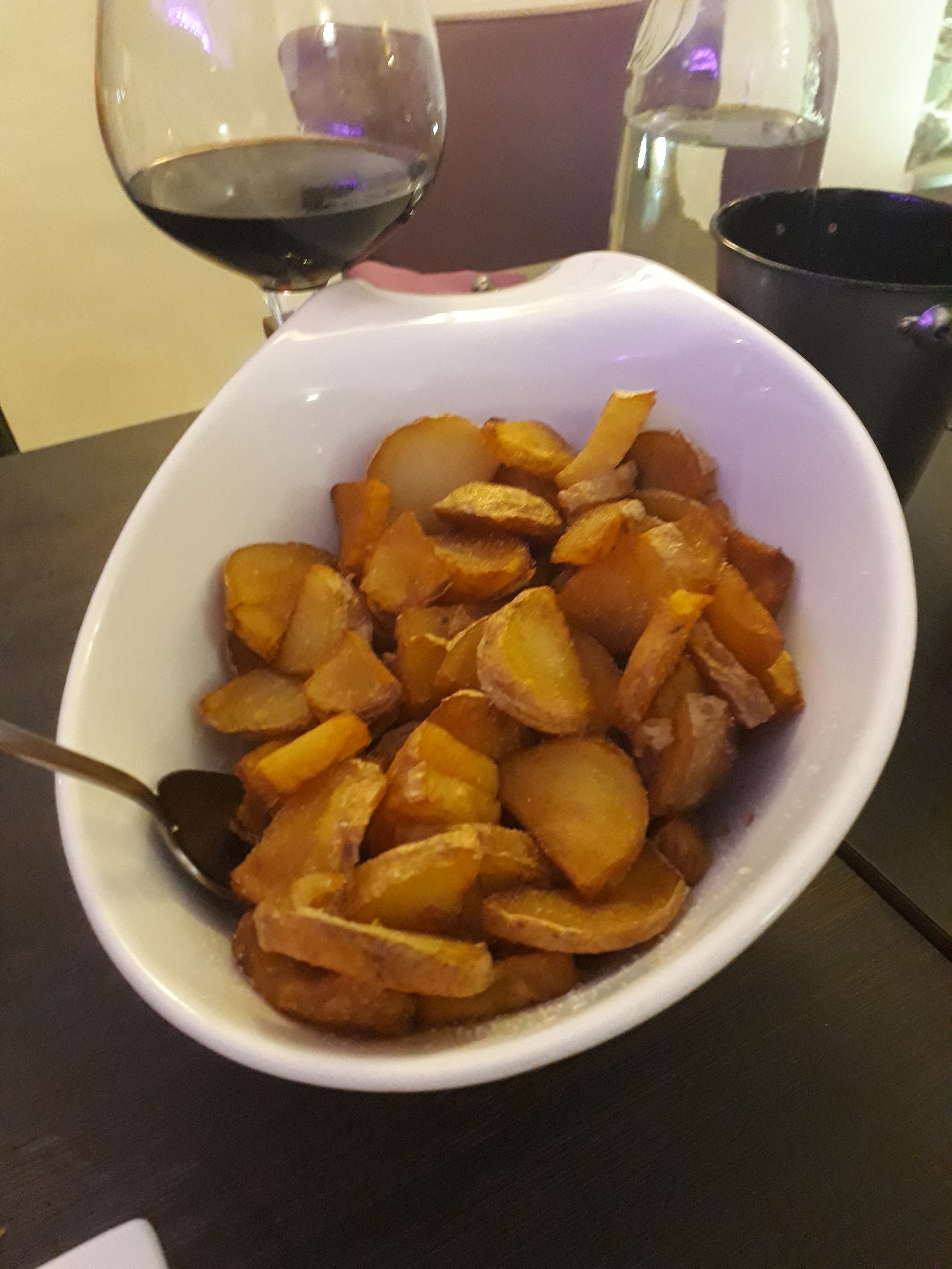 Viande cuite au feu de bois délicieuse, nous n’avons pas pris de dessert car les plats étaient très copieux mais la carte donnait envie. Par contre ne pas y aller pour le vins, malgré le nom, il n’y a même pas une carte des vins