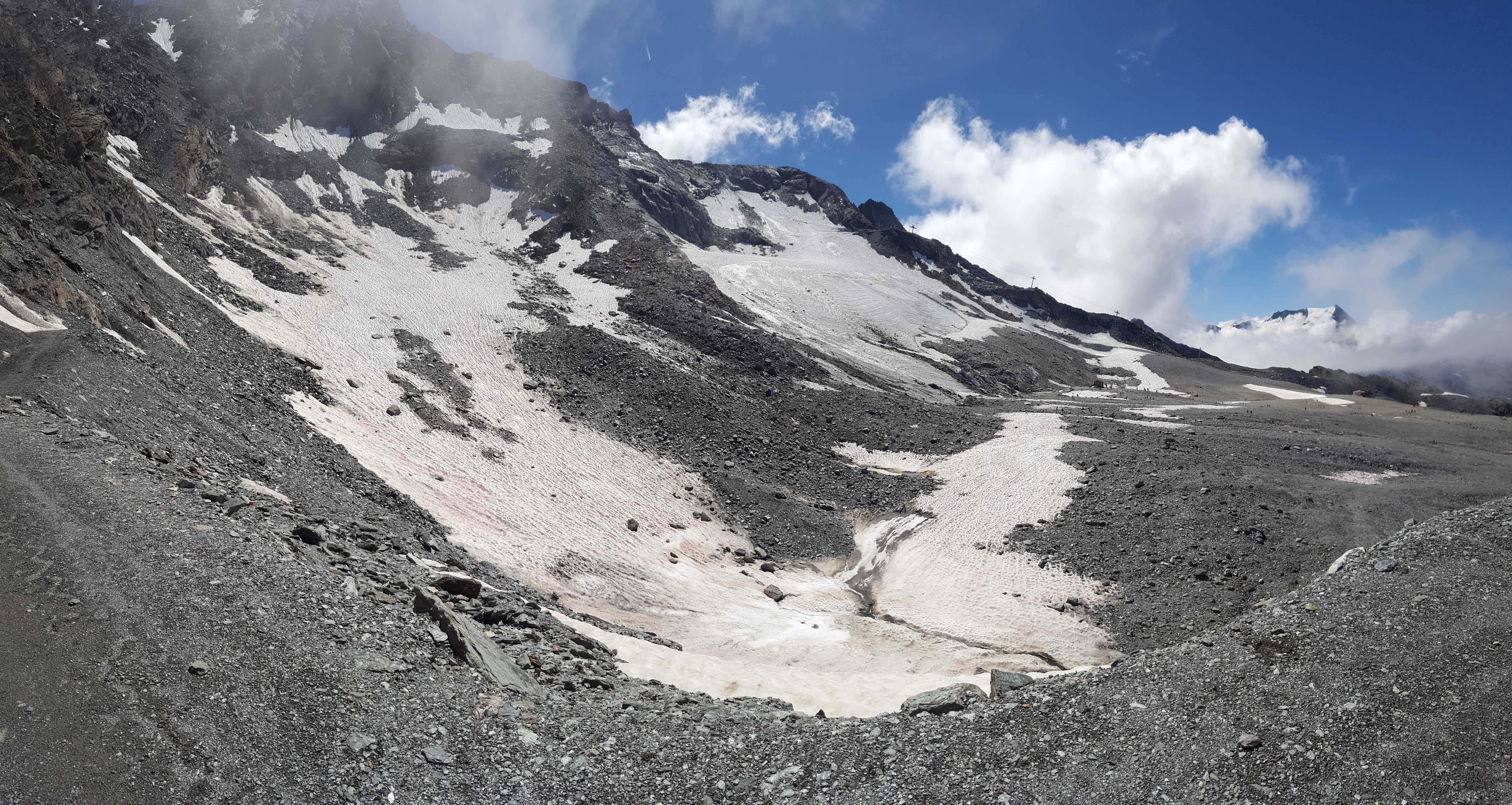 Magnifique panorama nature de toute beauté, des travaux en cours sur le glacier et transfert de béton en hélico de la roche de Mio vers le glacier pour les nouvelles télécabines mais c'est temporaire.
