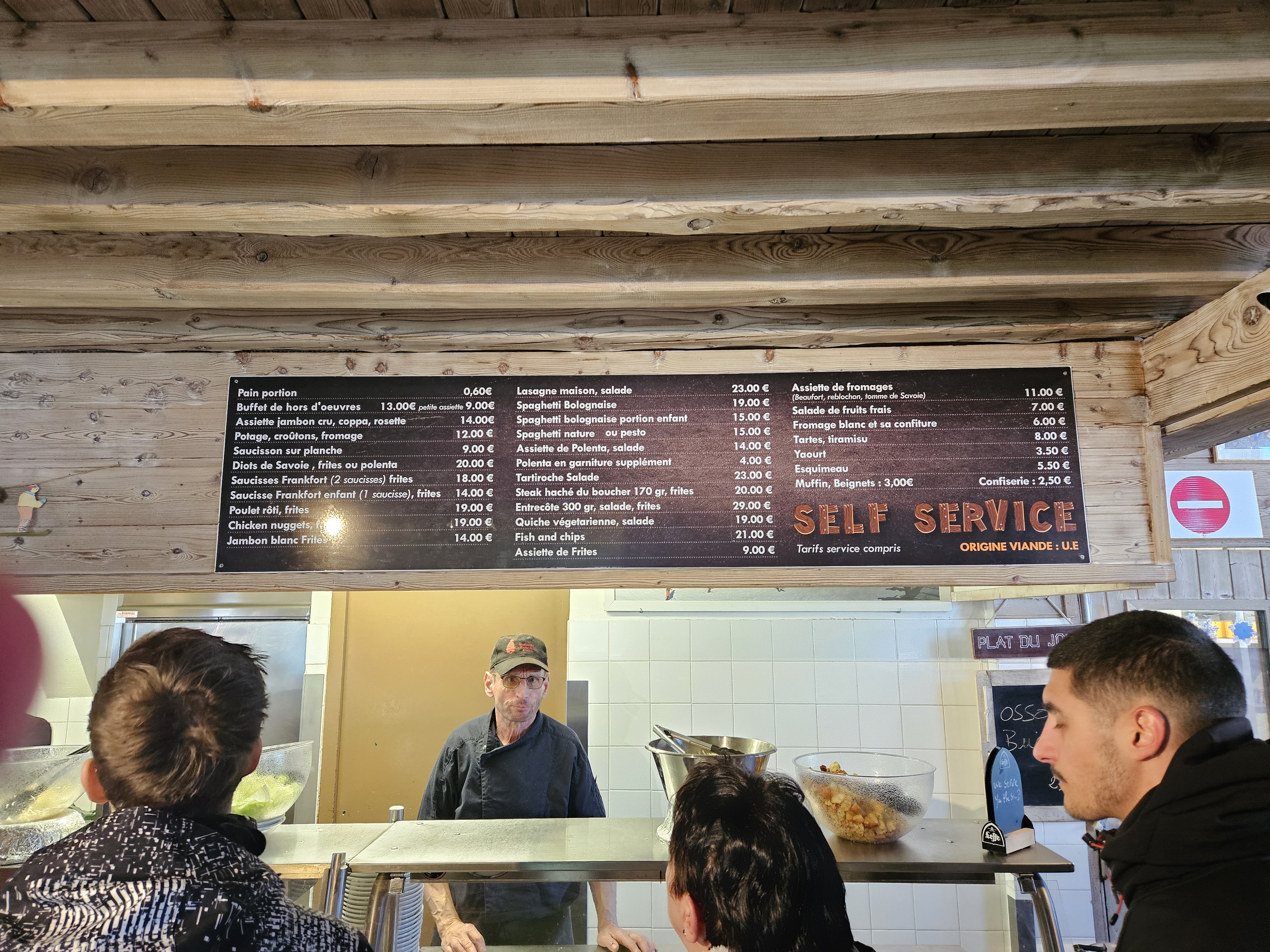 Super restaurant. Servi sous forme de buffet J'ai pris de la polenta et des diots...c'était super bon ( peut être un petit manque de chaleur, mais des micro-ondes sont à dispo) Vivement l'an prochain qu'on y retourne.